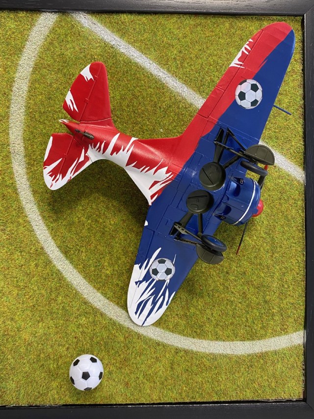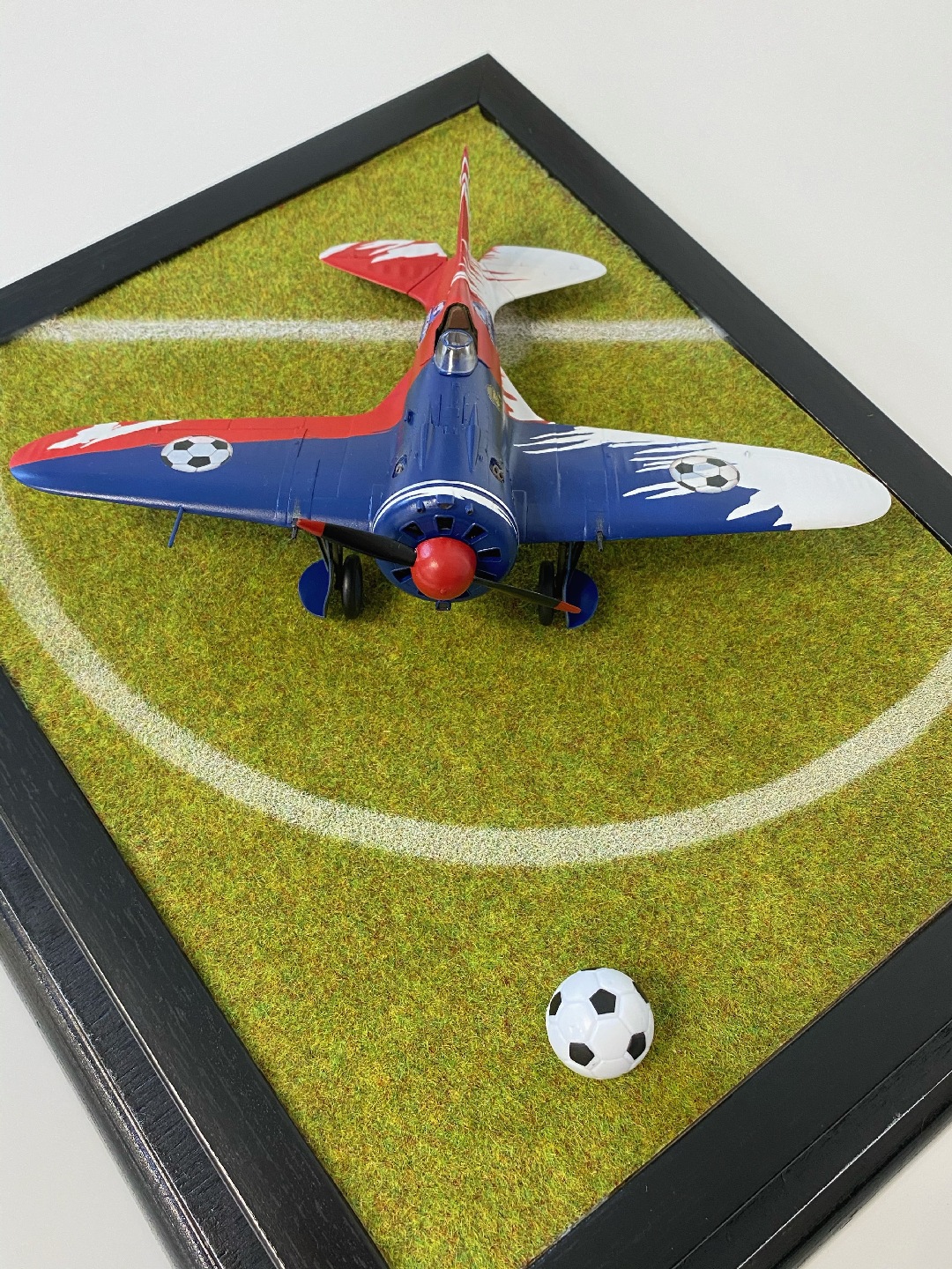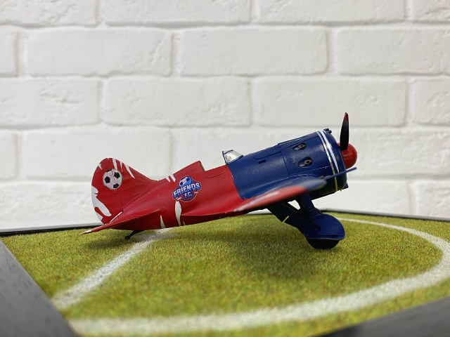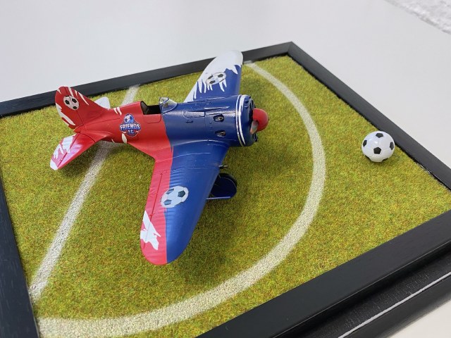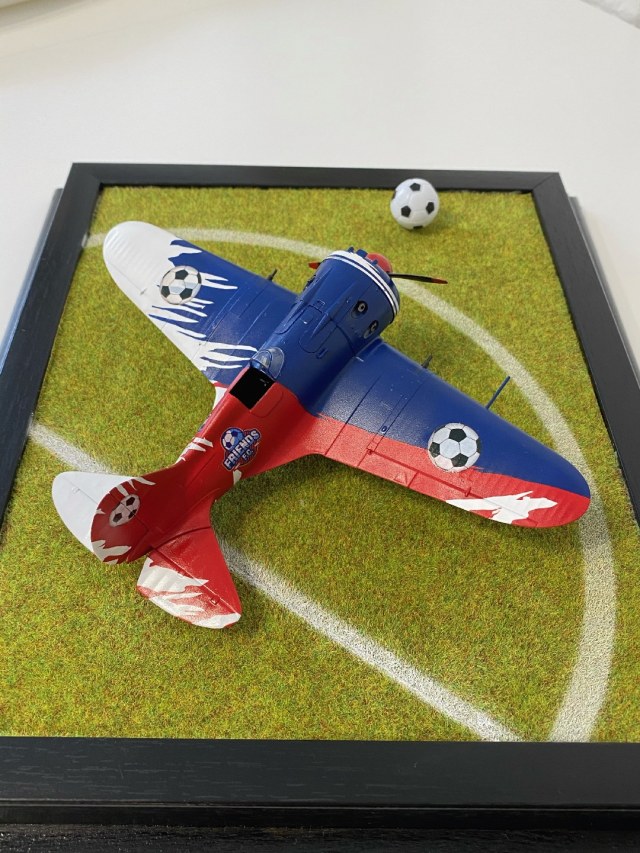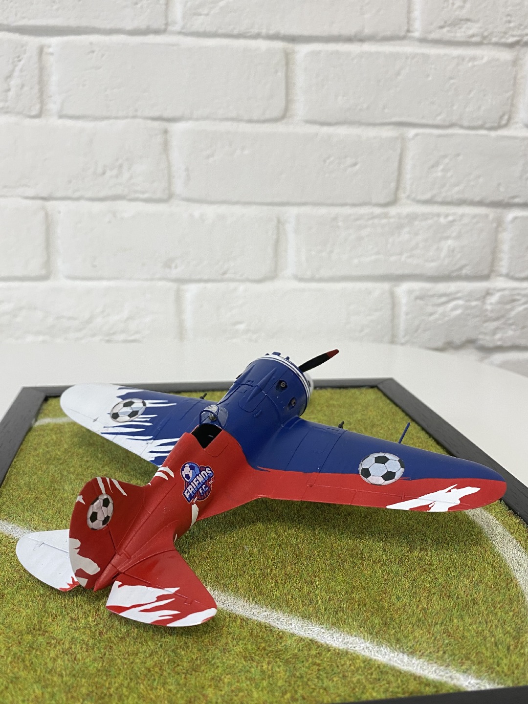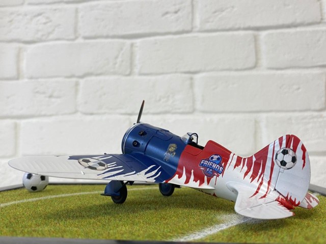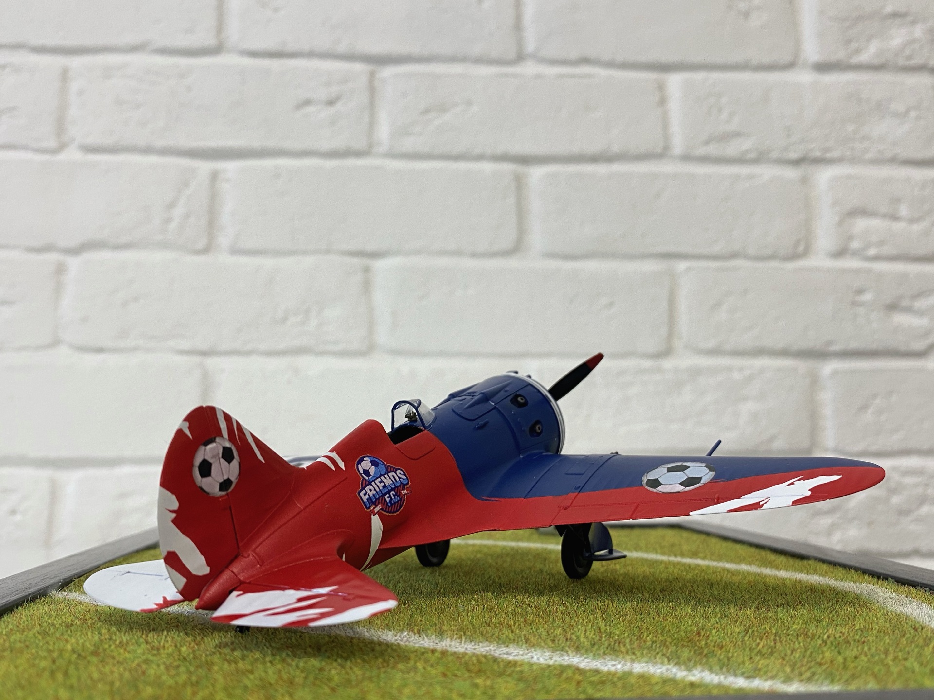 По окончании стройки встал вопрос о покраске. Ребенок стройку-то закончил, но инспектировать ее нет. Поэтому появилась идея покрасить И-16 в цвета детского футбольного клуба FC FRIENDS, в котором он занимается, отсюда и название. Идея показалась мне здравой и была с удовольствием воплощена в жизнь.