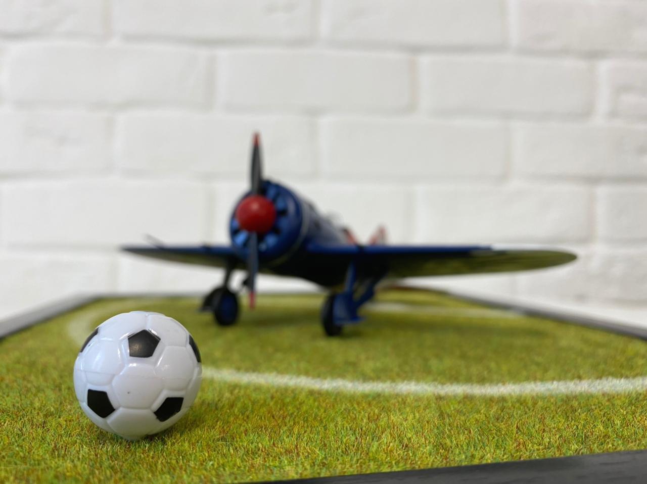 Прикольно, понравилось! Матчасть не ищу, но мяч, линии разметки и самолет не в масштабе)))