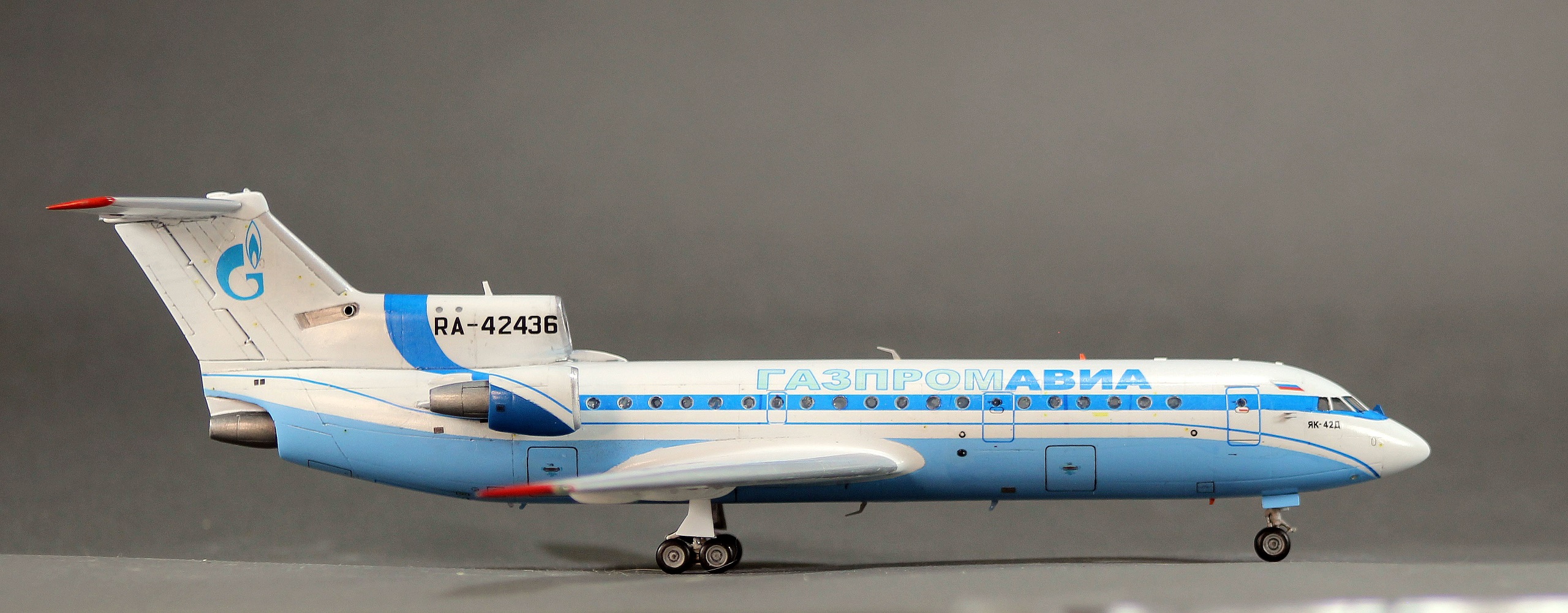 Предлагаю Вашему вниманию модель лайнера КБ Яковлева Як-42Д в старой "рубашке" авиапредприятия "Газпром авиа" RA-42436.