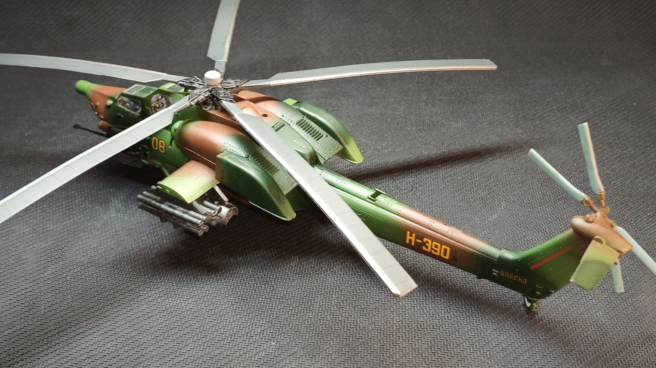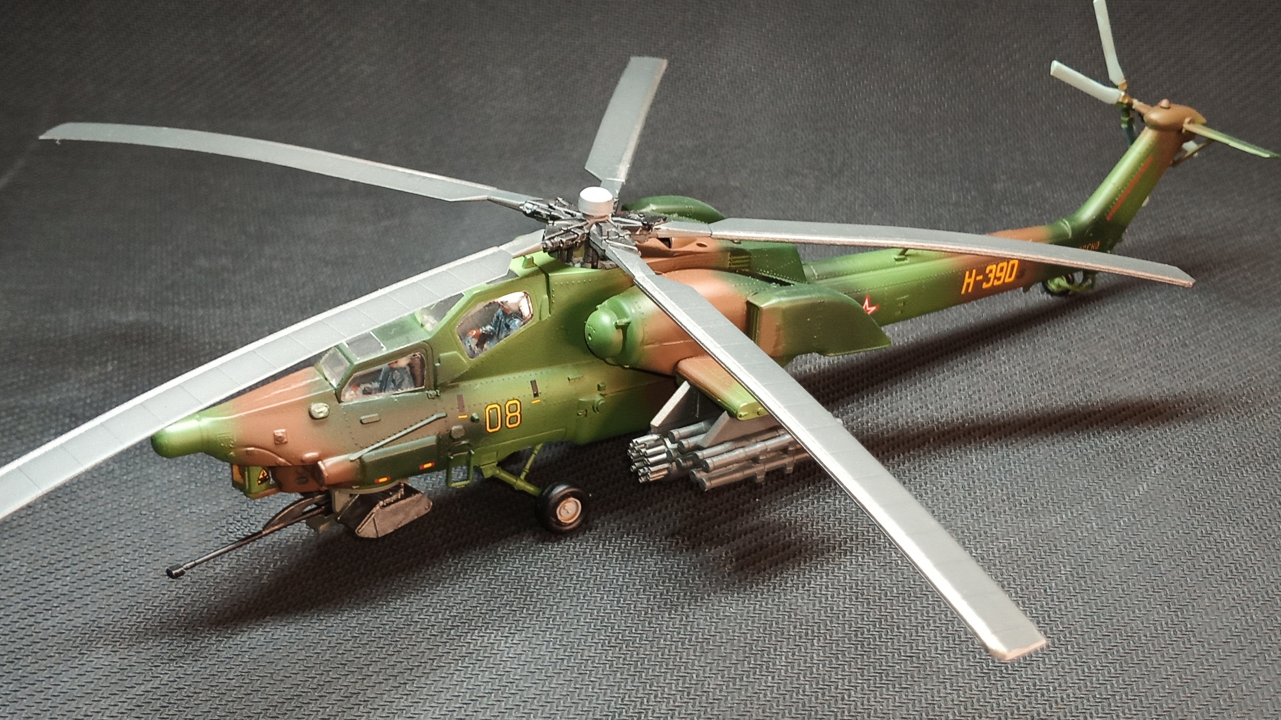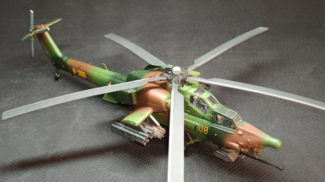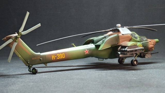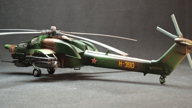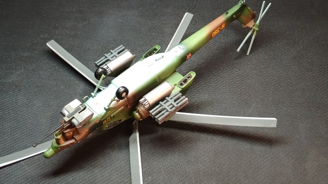 Представляю вам на обозрение "изкоробочную" модель Ми-28А, доработок не делал. Использовал грунт и краски Тамия, лак-спрей Mr.Hobby (супер гладкий матовый).