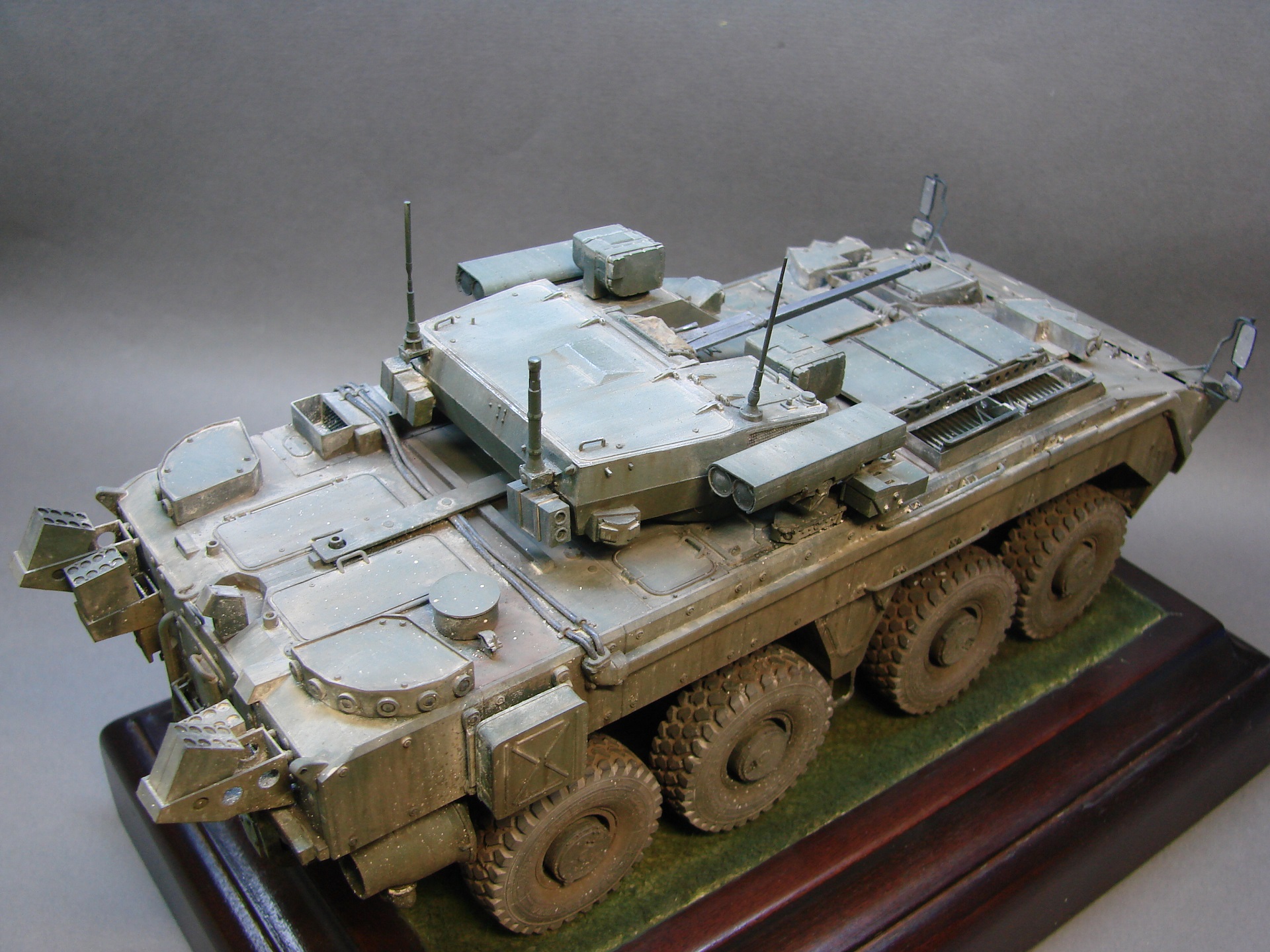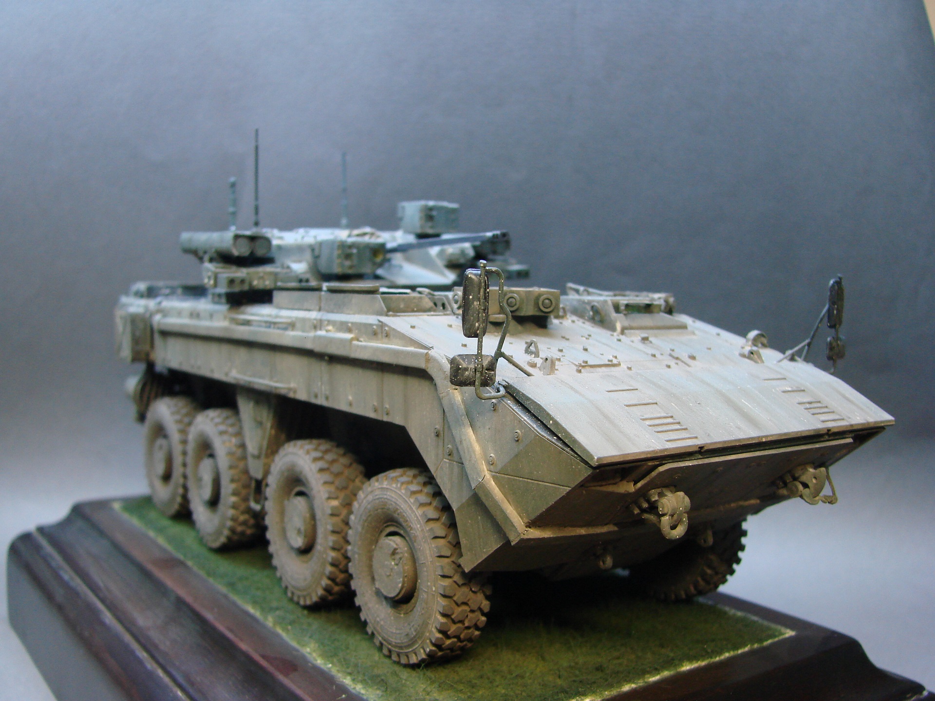 Доброго времени! Решил сделать Бумеранга с Афганитом,так как он очень хорошо дополняет данную модификацию ,смотрится более живо! И так по модели, колеса заменил на Миниарм, так же как и маску орудия, стволик орудия и пулемета были если не ошибаюсь от зебвал, травление от микродизайна, увы все его не удалось установить,так как модель была начата до приобретения травла, ну и самое важное, само дополнение Комплекса Активной Защиты сделанного на 3D, его делает очень хороший человек, наш коллега, Дмитрий Набоков (вот его ссылочка на ВК для приобретения https://vk.com/id658724813) дополнения сделано конкретно под звезду,подгонять ни чего не нужно,все встает как надо,да и качество достойное . БТР решил делать без опознавательных знаков, так как машина на вооружение не стоит да и как уже известно не встанет... Но тем не менеем , модель получилось достойно