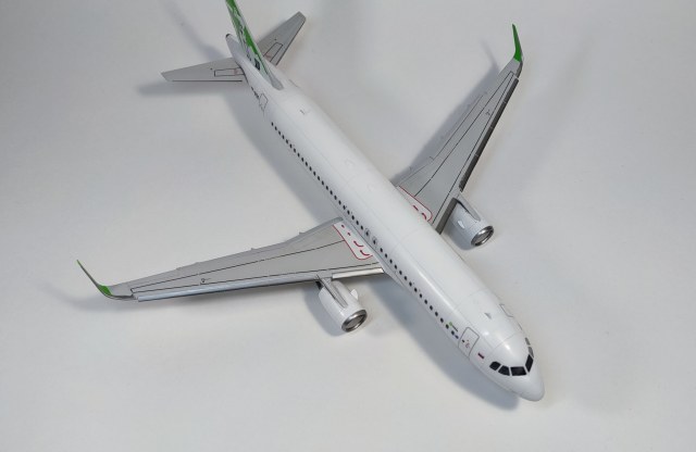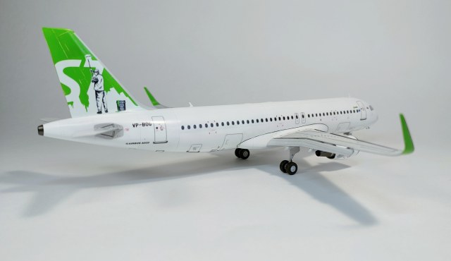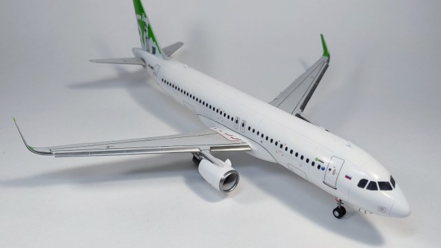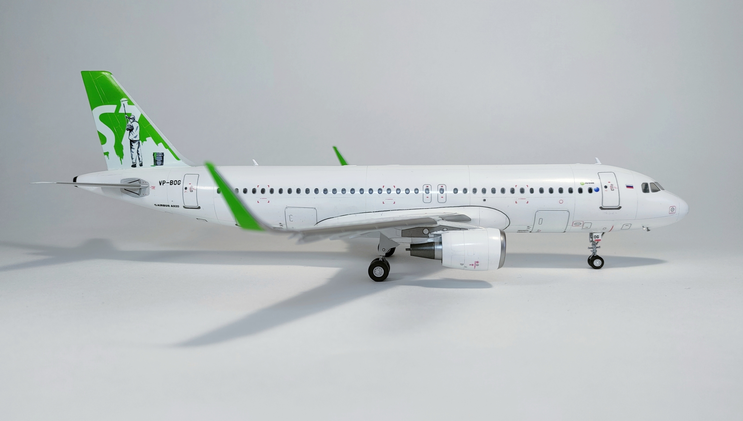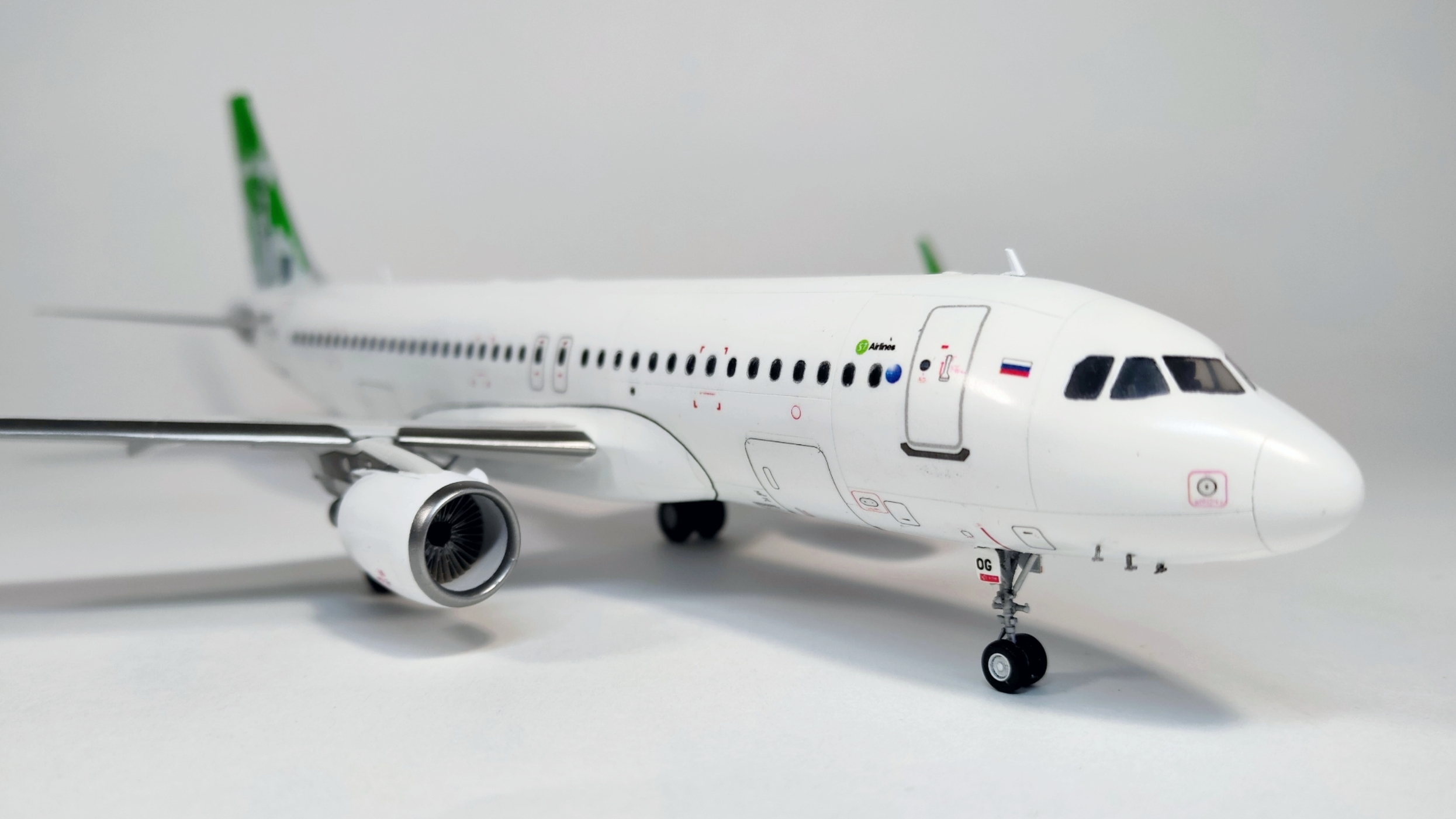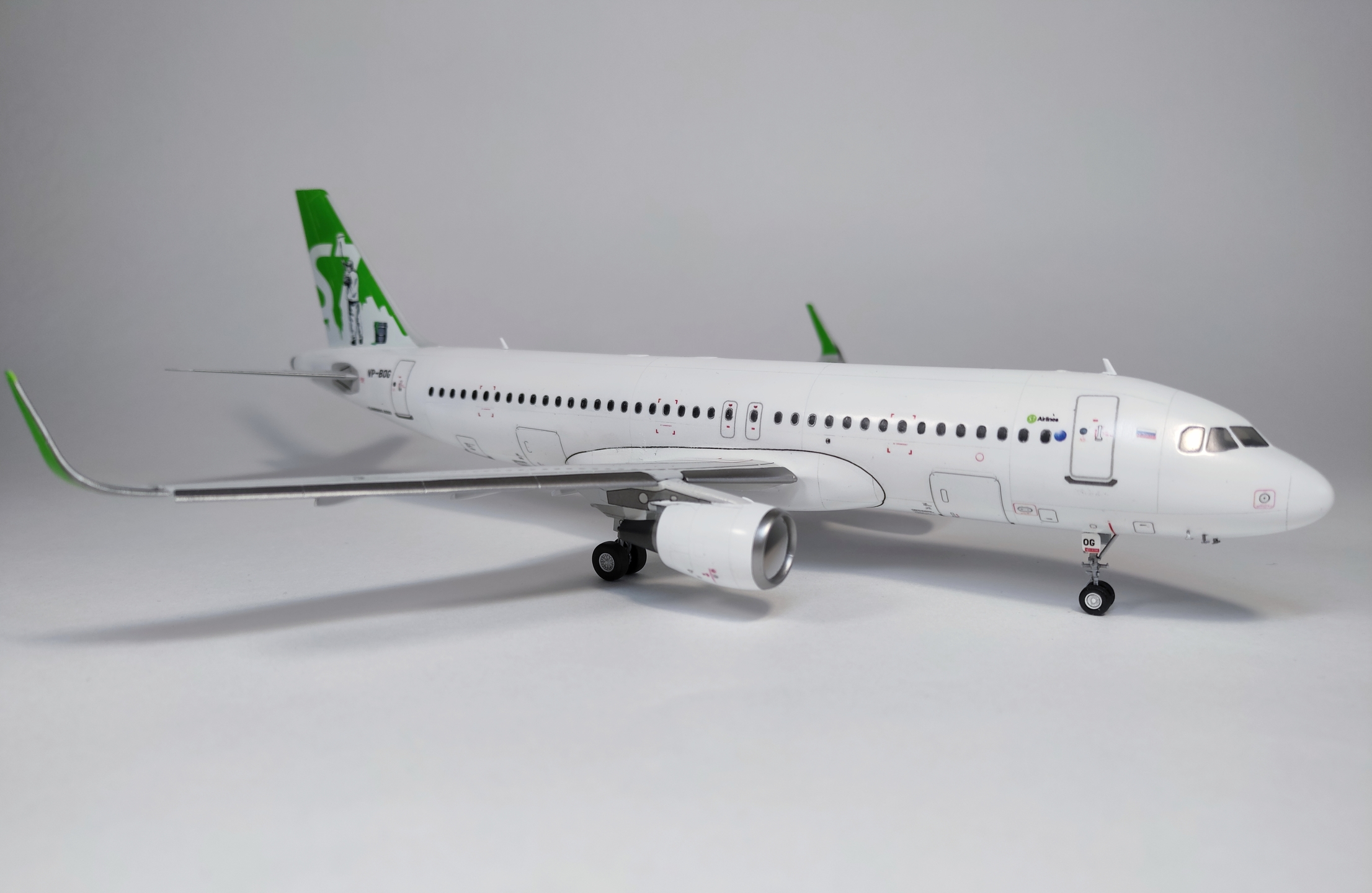 Здравствуйте коллеги. Закончил сборку модели в необычной ливрее S7 airlines. Сборка особых проблем не вызвала, самым сложным местом стал стык фонаря кабины. При сборке использовал некоторые элементы травления. Окраска нитрой от Gunze, зелёный на киле и винглетах - H16. Маски от Arma Models. Декали Ascensio. После финишного лака прошёлся тамиевской полиролью. Сборку освещал на форуме. Готов ловить помидоры))