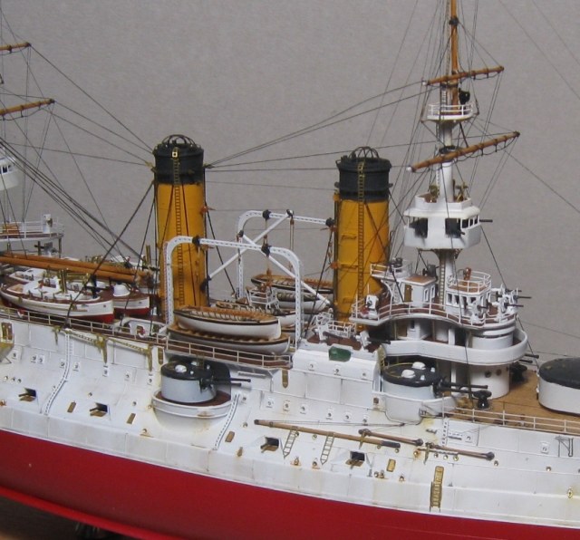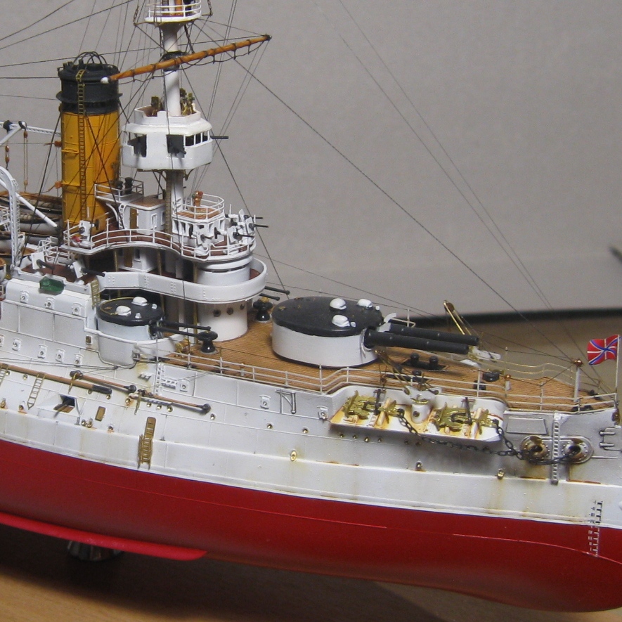 Очень красивая модель одново из самых зрелищных броненосцев. И я согласен, зря вы тут ржавчину и.т.д. сделали, чистым броненосец вяглядел бы лучше. Очень сдорово и убедительно выглядят флаги - из чего они? Поздравляю с завершением!