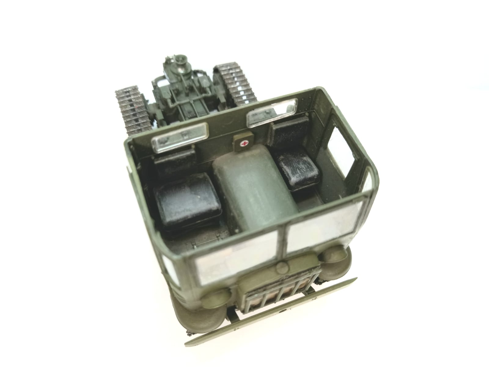 Набор от "Звезды" очень понравился, особенно учитывая вполне приемлемую цену. Просто отличная детализация. Сборка из коробки ,вариант окраски согласно инструкции. Для разнообразия добавил прицеп от фирмы "MSD" и кое-что в кузов. Сложностей при сборке никаких не было. Использовал краски от "ТАМИ" и звездовские "Мастер-Акрил". Пигменты и химия от "ТАМИ" и "ZIP"