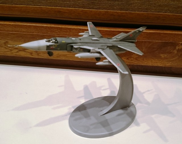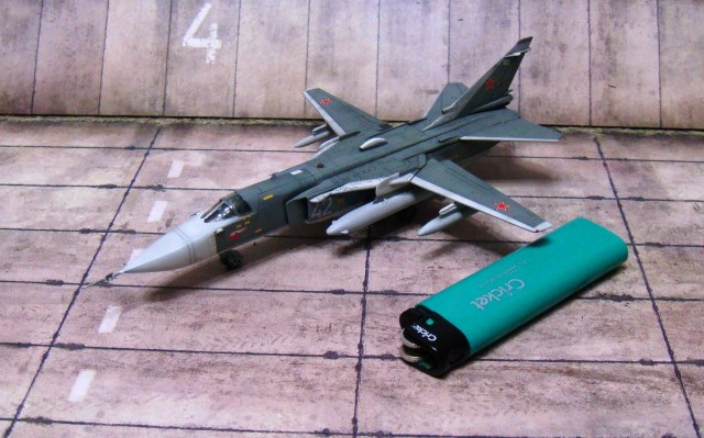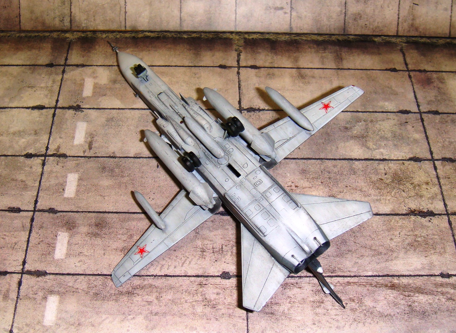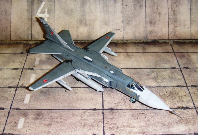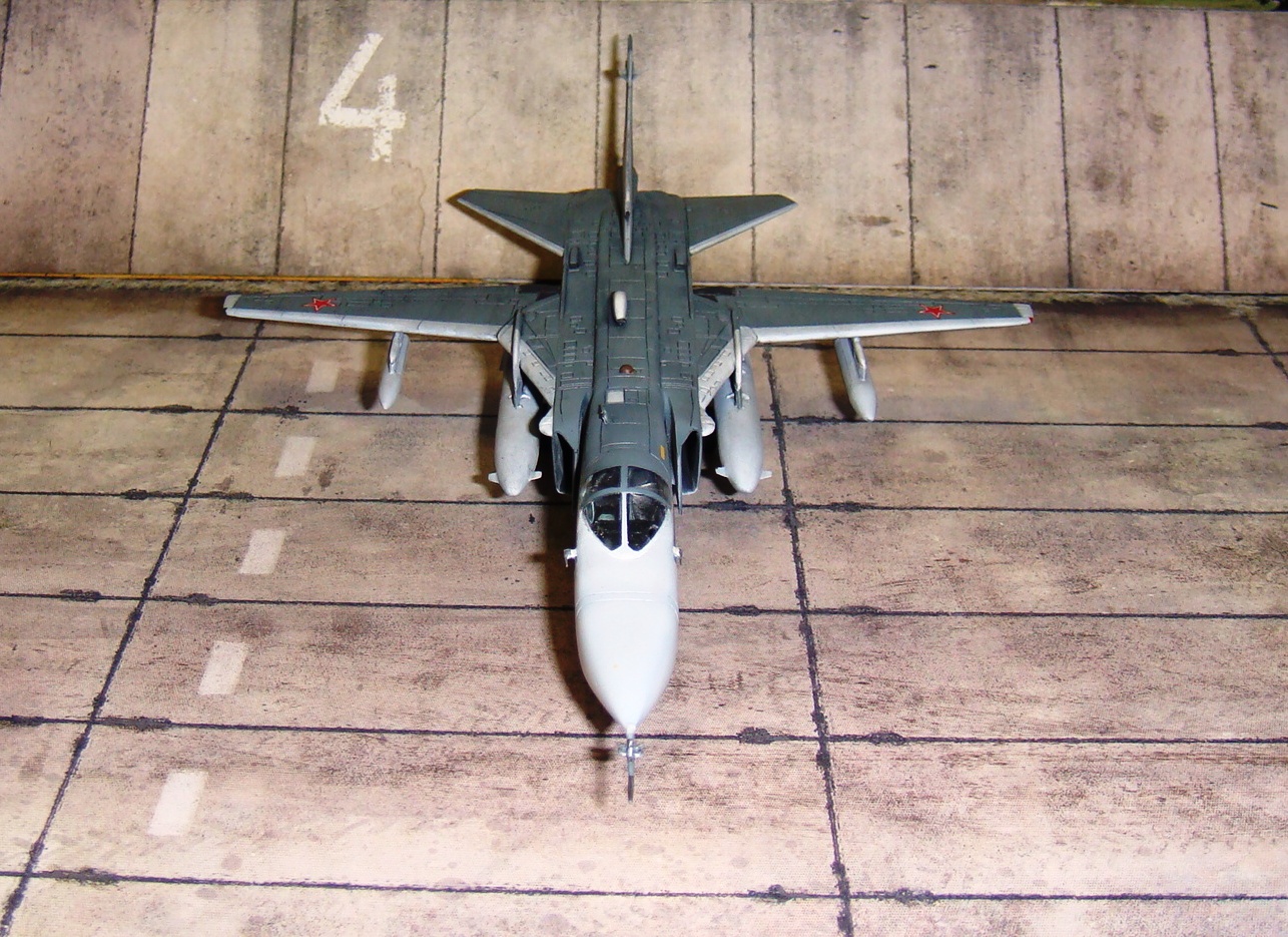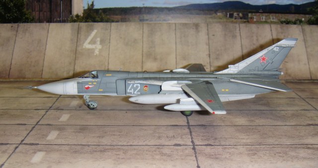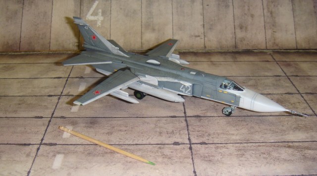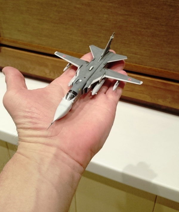 Заказчик человек далекий от моделизма, попросил МР, а где его взять в 144-ом. При этом, заказчик просил просто собрать и покрасить. Я заказчику сразу сказал, глобальными перепилами и изменениями я заниматься не буду, вот и получилось толи М, толи МР.С подвеской, мне и самому нифига не понятно. Посмотрел фото в сети, что касаемо МР и то что лежало в наборе, вроде отдалено похоже. Вопрос о том что-бы полностью было похоже не стоял, нужна была модель Су-24.