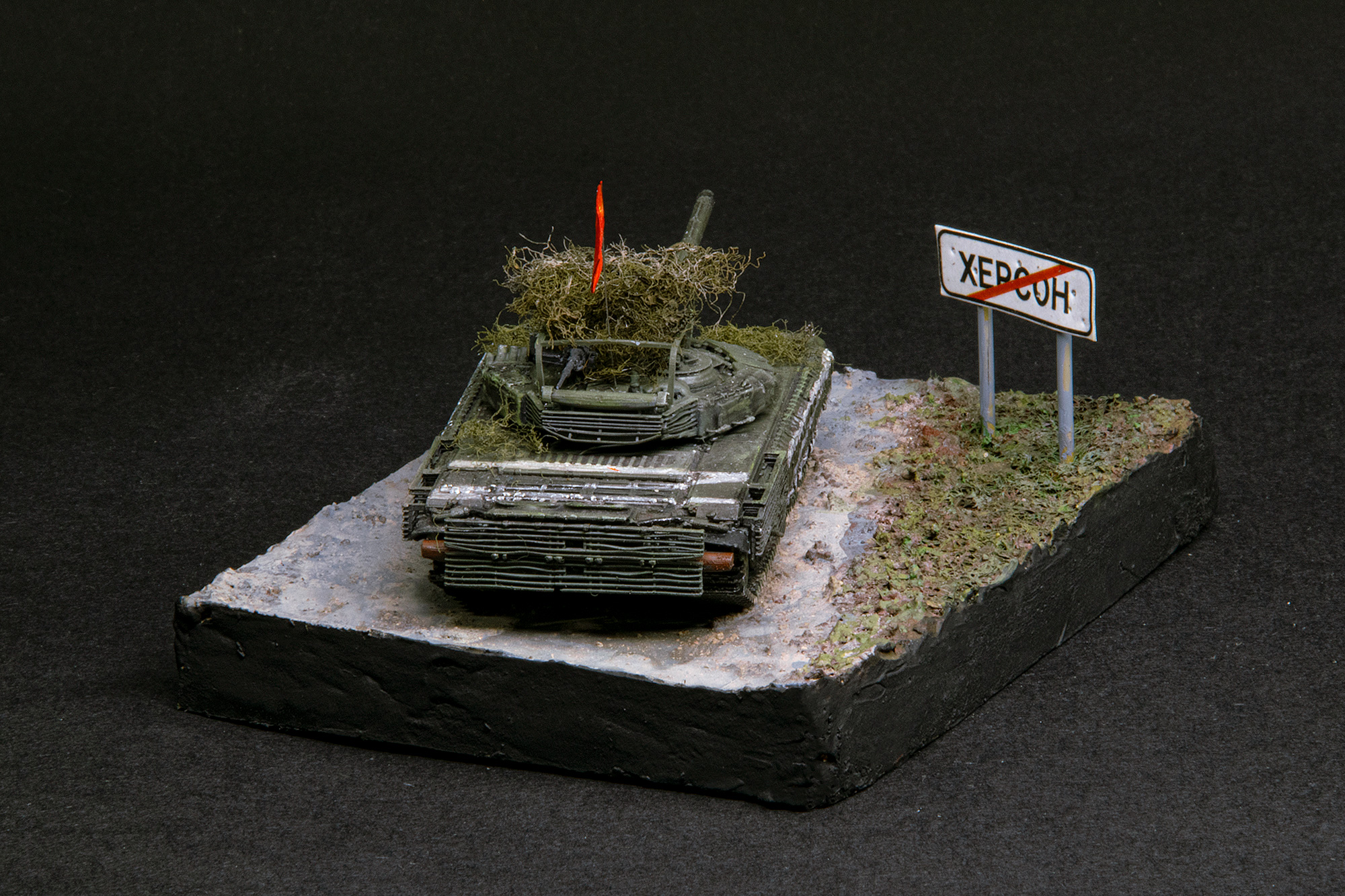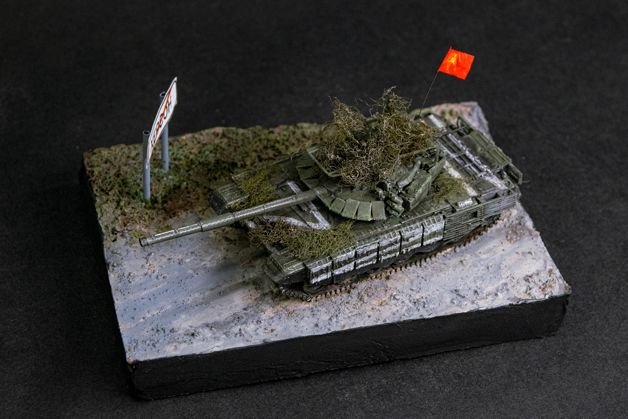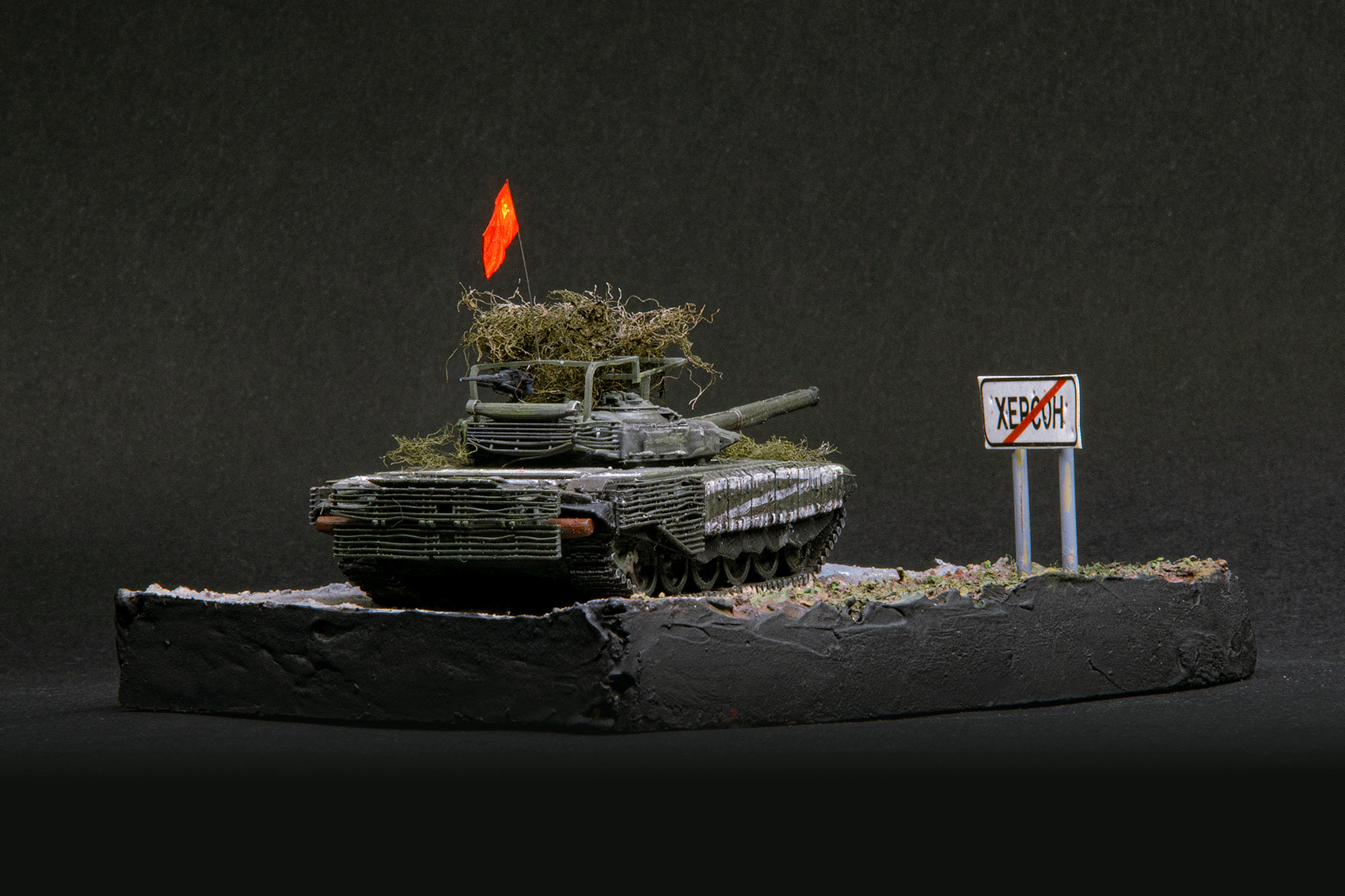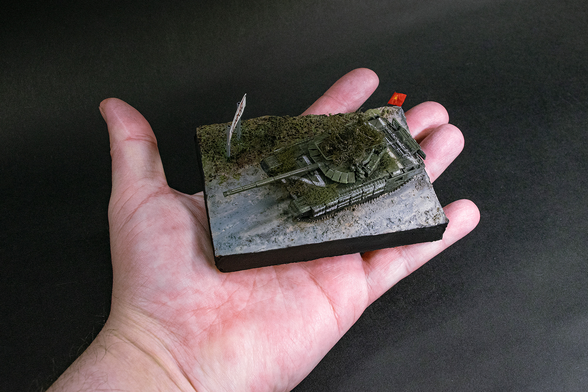На мой взгляд, этот танк стал, наверное, самым ярким символом операции "по принуждения к дружбе". Не удержался от соблазна сделать по мотивам известных кадров диорамку.. Красный флаг, "палатка" на башне, какое-то гнездо. Очаровательно!