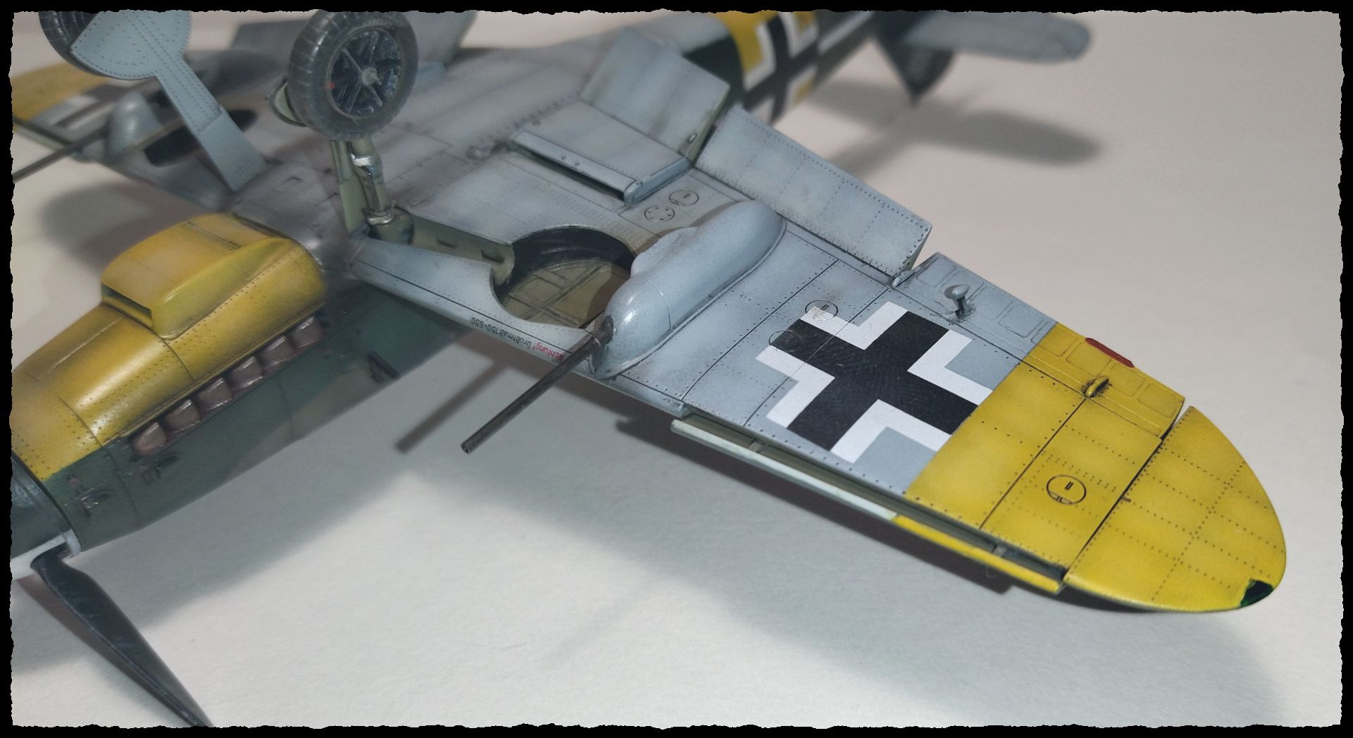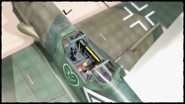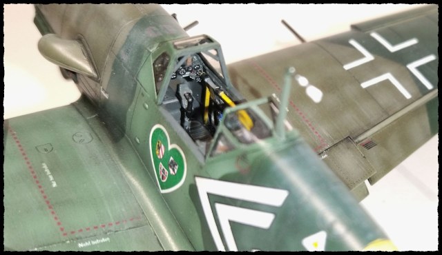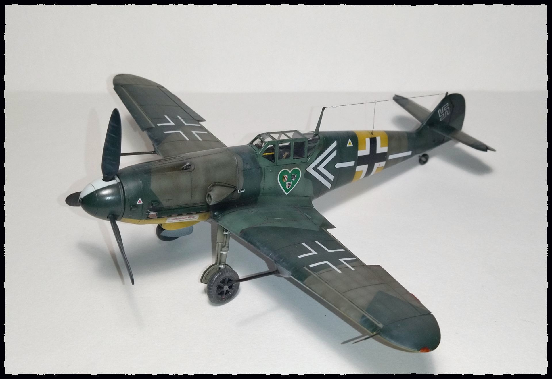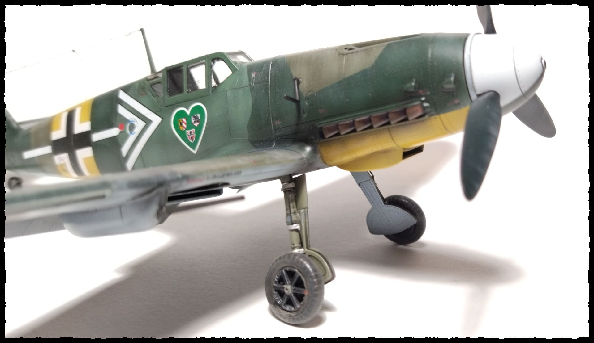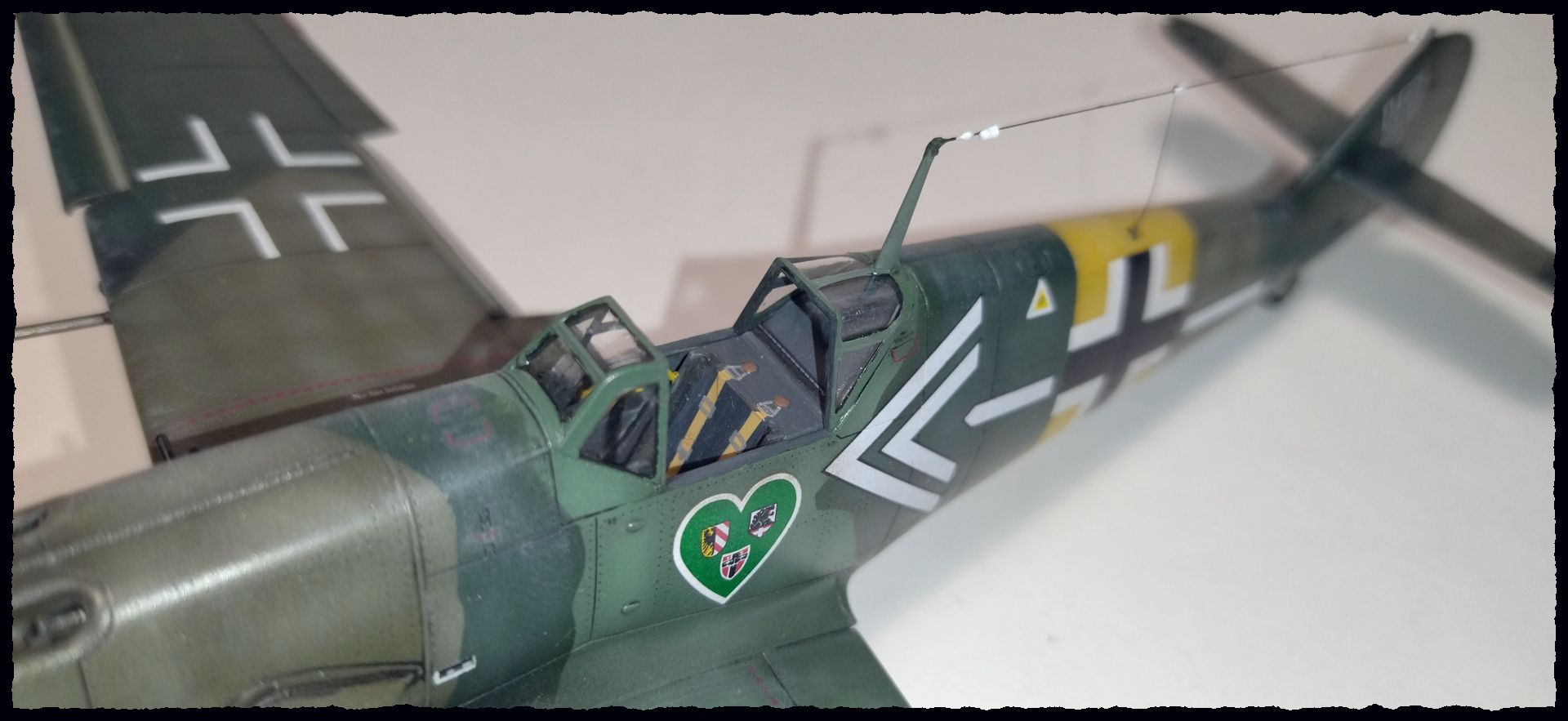 Модель отличная во всех отношениях. Тонкий крой, клеп где нужно, кабина, шасси подробные. В коробке как обычно куча ненужных деталей - результат унификации со всеми поздними Мессерами. Удивило при этом отсутствие подкосов в кабине. Пришлось делать самому. Так же сделал шланги на шасси. И ПВД из иглы. Все остальное самодостаточно. Даже стволы рассверлены. Кое где все же надо шпаклевать и выравнивать детали относительно друг друга. Декали так же на уровне - тонкие, но не сворачиваются как у Звезды при любом неверном движении. Разве что надо аккуратно двигать, прилипают сразу. При приваривании рельеф обволакивают отлично. Но все равно желательно прорезать на стыках.