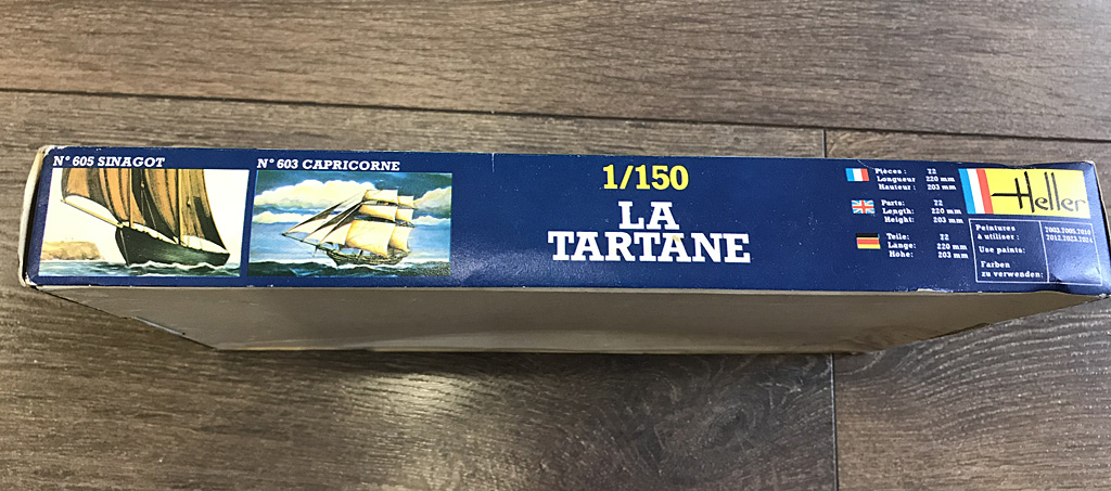 И вот на этом зуде я и пришел к следующему решению: надо воскресить своё хобби, но при этом надо постараться избежать ряда ошибок прошлого. А, именно: не стоит сильно углубляться в запилы, когда от коробочного пластика остается пара деталей, да и те перепилены вдоль и поперек – это всё сильно затягивается во времени и в итоге интерес к модели угасает или вовсе пропадает. И не стоит распыляться по разным направлениям, фирмам и масштабам – надо выбрать какую-то серию, чтоб при окончании нескольких моделей дома образовалось что-то типа небольшой коллекции. А под это дело идеальным образом подходит серия вот этих небольших (и уже давно любимых) корабликов от Heller. Решение есть, есть одна готовая модель, одна начатая (Sinagot) и одна в запасе (Kurun), но ведь нужно еще! Пошел искать по магазинам что есть в наличие, ведь я же помню, что относительно недавно был перевыпуск этих малышей. Но увы, в магазинах ровным счетам НОЛЬ! Пошел на ебей, там в Италии нашел за не самые гуманные деньги интереснейшую яхту Fauvette (обзор будет позже), которая числится на официальном сайте Heller, но которую в свободной продаже я НИ РАЗУ не видел. Она долго лежала у меня в закладках, пока по чистой случайности я не наткнулся на еще один лот из двух моделей и тоже из Италии, а именно на Sinagot (который у меня уже имеется и над которым ведется работа) и на Tartana, которую я и показываю в этом обзоре. Эта самая Тартана – ничто иное, как известный многим Корсар. Зачем Heller в дальнейшем переименовал модель – лично мне не известно.