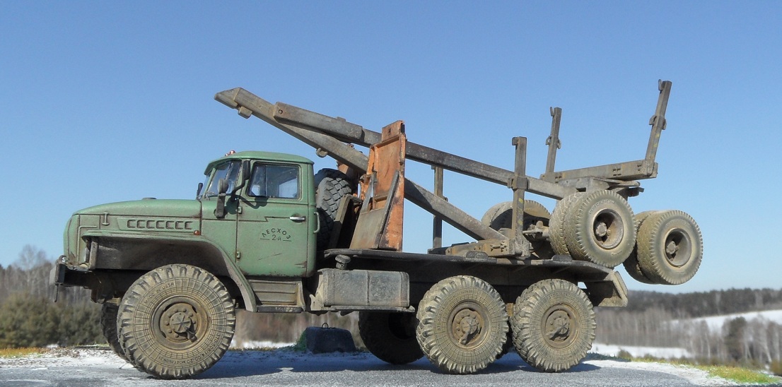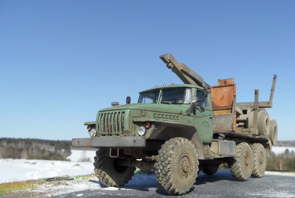 Модель лесовоза Урал от AVD Models. кабина и рама металл, остальное традиционно пластик. Деталей достаточно много, но сборка труда не составила, стыковка отличная. Из доработок только ручки кабины. Собирать было интересно, окрашивал автоэмалью, грунтовал Кудо. Приятного просмотра!