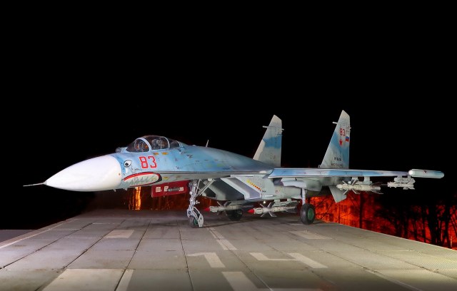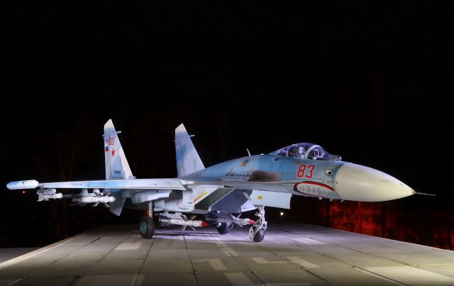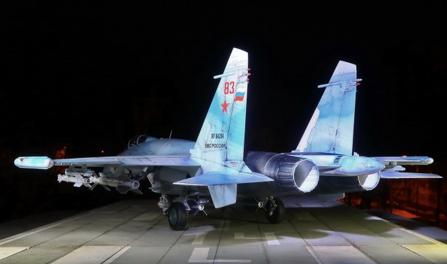 Это Су-27 ранних серий с тонким "ластом". Расположение блоков ловушек отличается от более поздних модификаций.