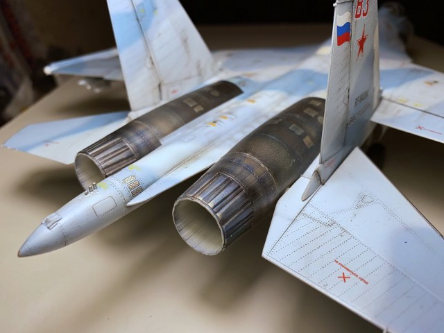 И по этой причине неправильно окрашены внутренние поверхностей сопел (белое покрытие у современных АЛ-31ФП и АЛ-41Ф-1С, устанавливаемых на 30СМ и 35С), РП законцовки ("пилотки"