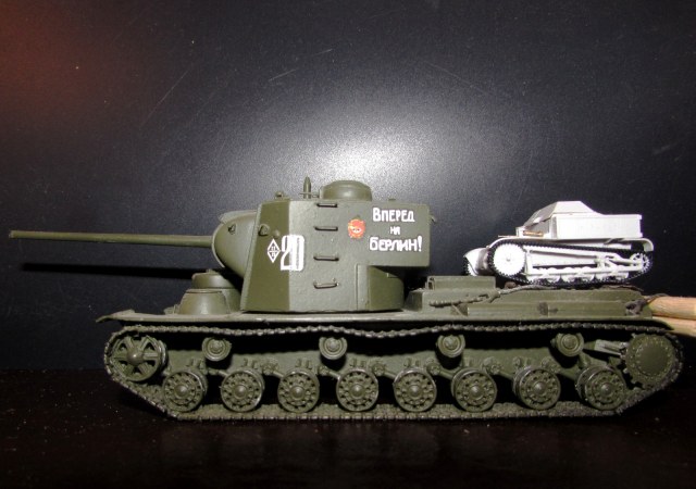 В собранном виде модель чуть больше трех сантиметров в длину. На спичечном коробке спокойно поместятся две танкетки.