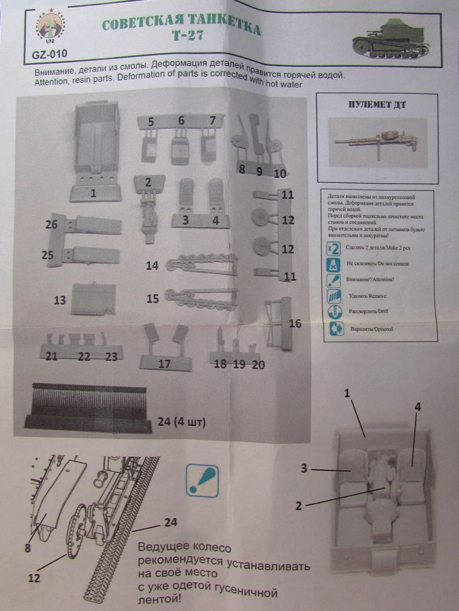 Фототравление в наборе отсутствует (что ИМХО хорошо), зато вложен металлический пулемет ДТ.