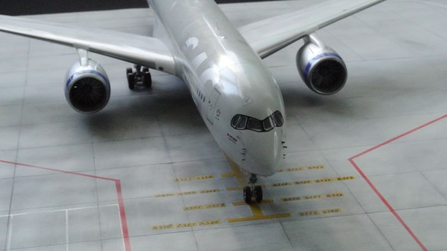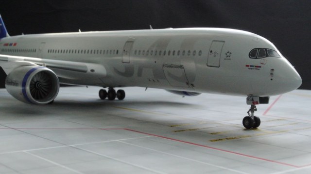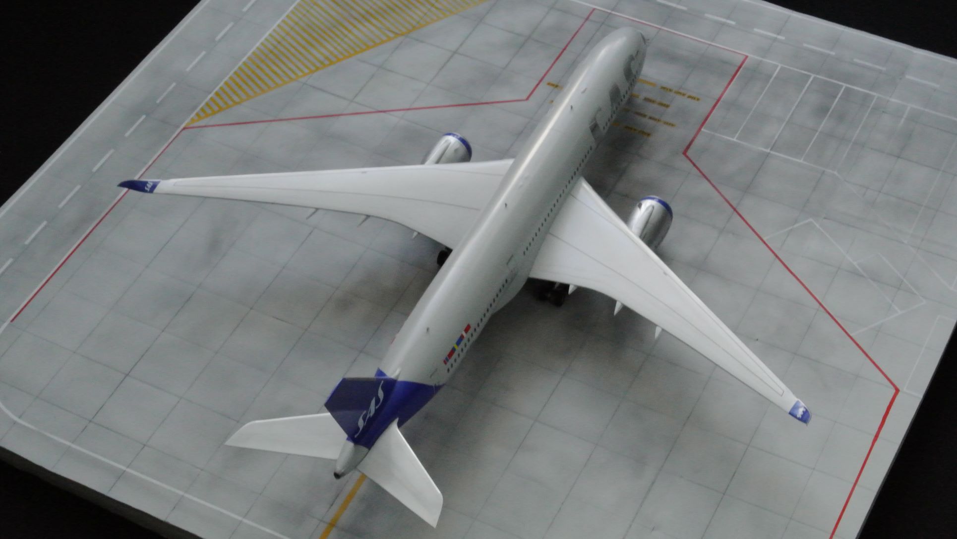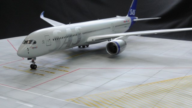 Сборка хорошая. Модель дополнена фототравление от Микродизайн, поменял ревеловские лопатки двигателей на травление, также дополнил шасси и некоторые антенны на носу. В основном химия от Ganza серии Mr. Color. Ливрею заказывал по индивидуальному заказу на Pas-Decals, но надпись букв "SAS" была серой, поэтому решил сделать маски и покрасить в серебряный. И ещё на декалях разные размеры у белой печати "SAS" на хвосте, не углядел при покупке, но пришло два экземпляра и сделал как надо. Также обратите внимание на диораму перрона, она тоже сделана самостоятельно. Буду рад любым комментариям, спасибо!