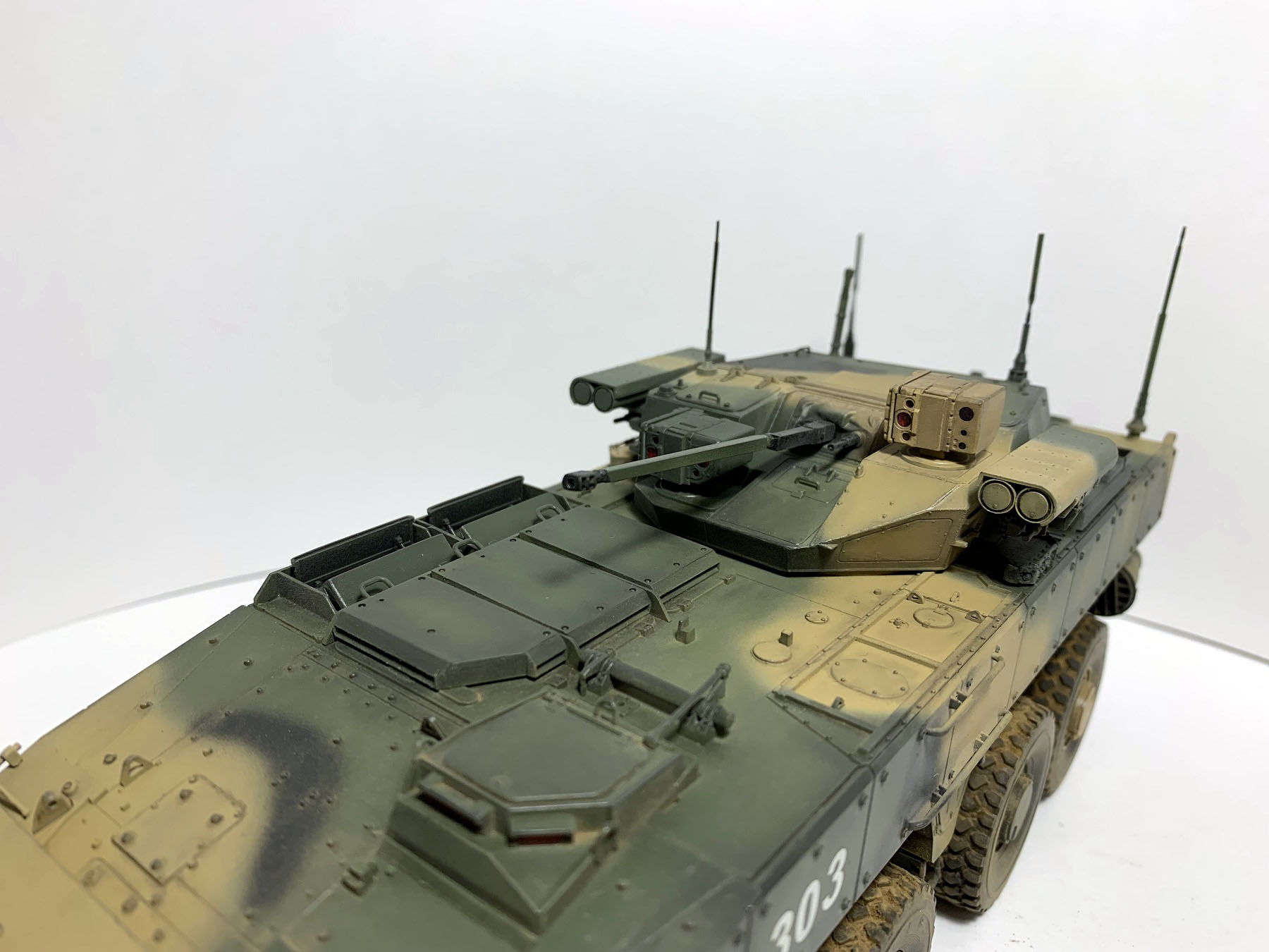 Всем добрый день, представляю вам можель БМП К-17 "Бумеранг" производства "Звезда" в трехцветном камуфляже. Модель изкоробочная.