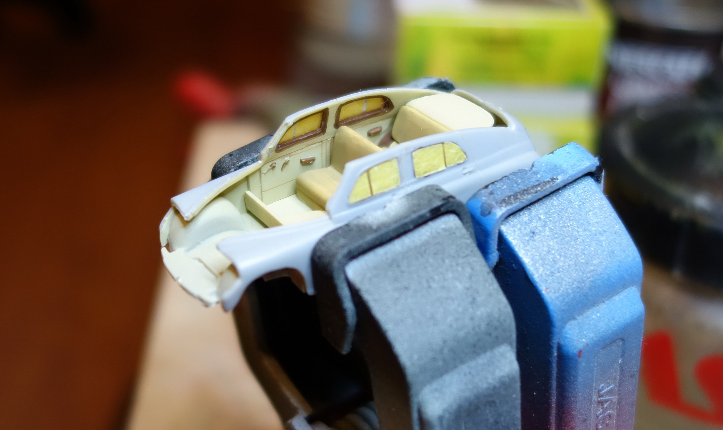 Модель, как и реальный автомобиль, собиралась из двух наборов М-20 «Победа» и ГАЗ-69, плюс доработки из пластика. Очень долго провозился с радиаторной решеткой и фарами. Распилил решетку и отливал фары вручную.