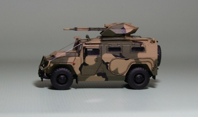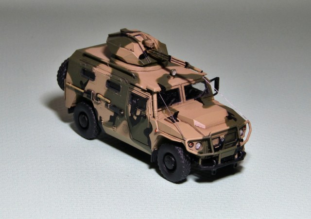 Конверсия от Танкограда на базе модели от ACE в 72-м масштабе. Прототип данного бронеавтомобиля с 30мм автоматической пушкой 2А72 был впервые представлен на форуме "Армия-2016". Из дополнений на модели только фары, зеркала и тросики. Хочу отдельно отметить на удивление высокое качество модели, видимо поздний ACE уже совсем не тот привычный ACE, как будто собираешь вовсе не ЛНД. Грунтовал серым грунтом Тамии, красил акрилами АКАН, глянец и смывка Тамия, финишный матовый лак от Ганзы. Приятного просмотра.
