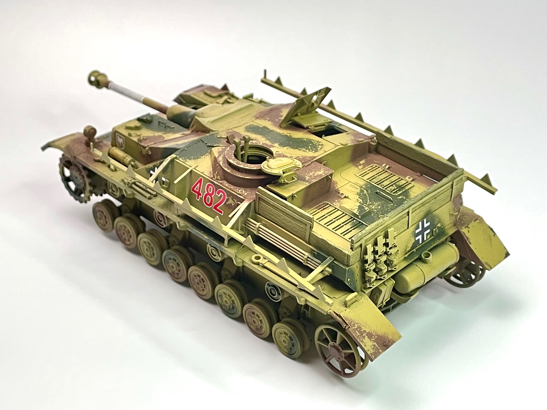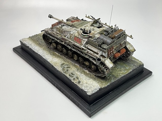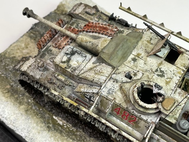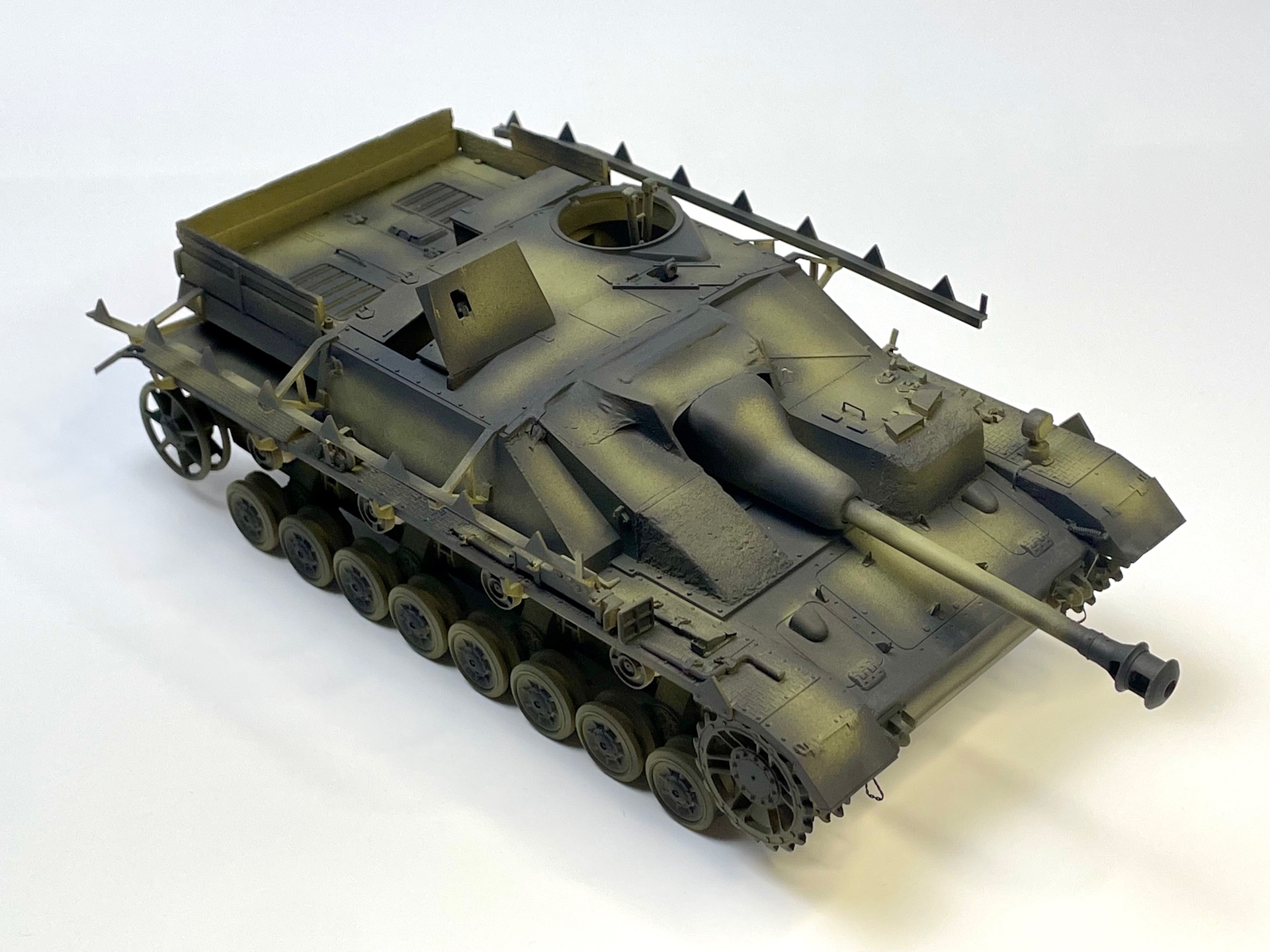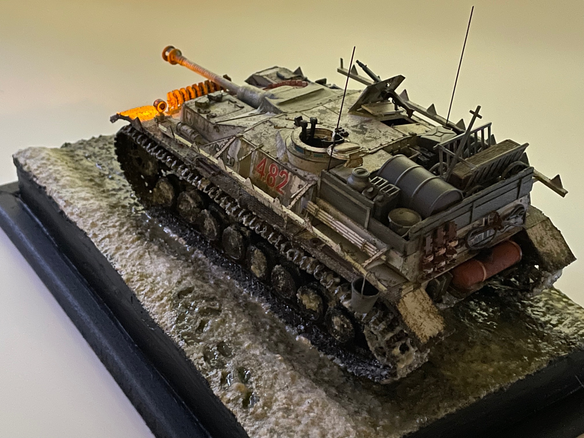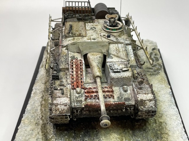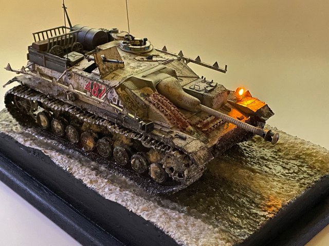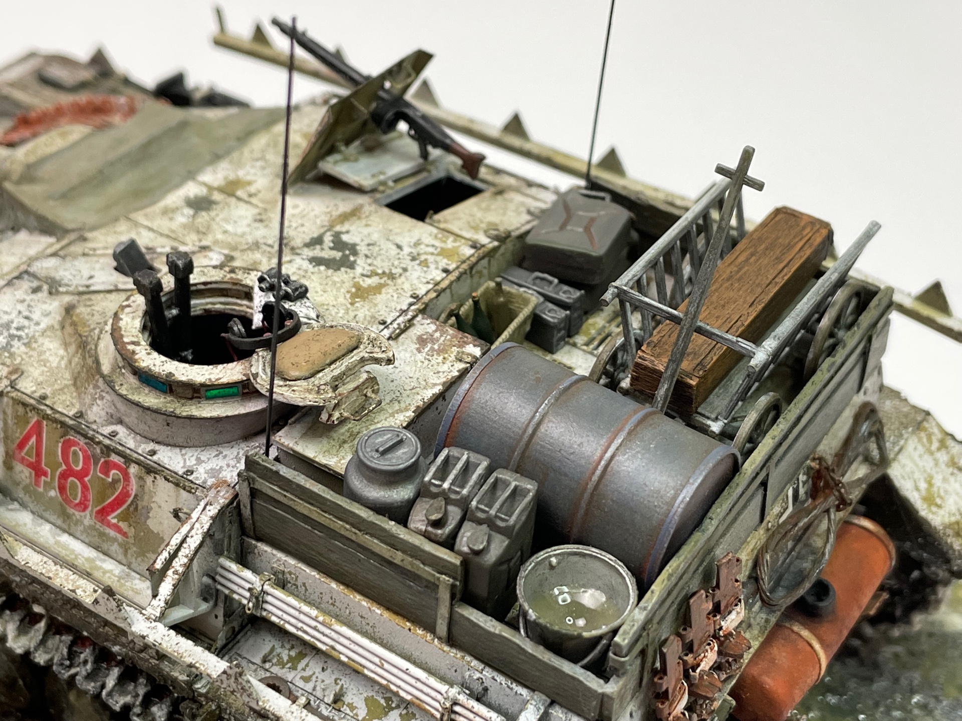 Своим результатом по доработке и сборке модели доволен. По задумке данная самоходка принадлежит 279-ой бригаде штурмовых орудий (Stg.Brig.279). Время действия - конец марта 1945 года, где-то на пути к Инстербургу и Кенигсбергу, где после, в апреле 1945 года, данная часть была уничтожена, а ее остатки сдались в мае советским войскам.
