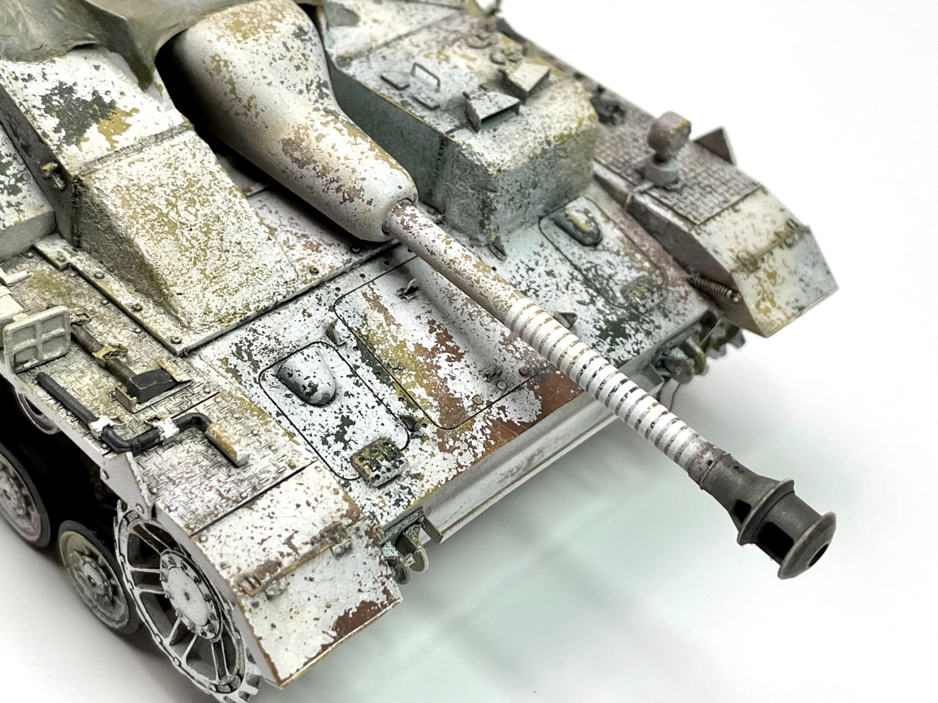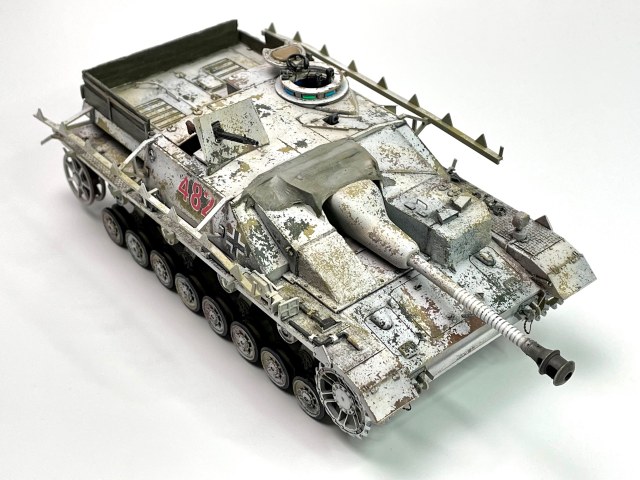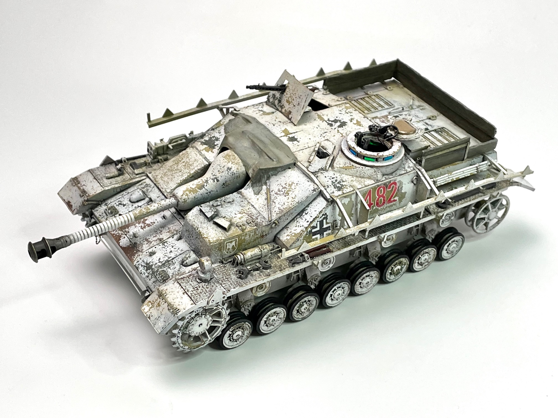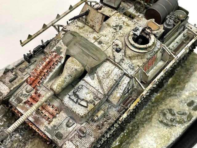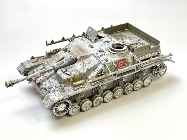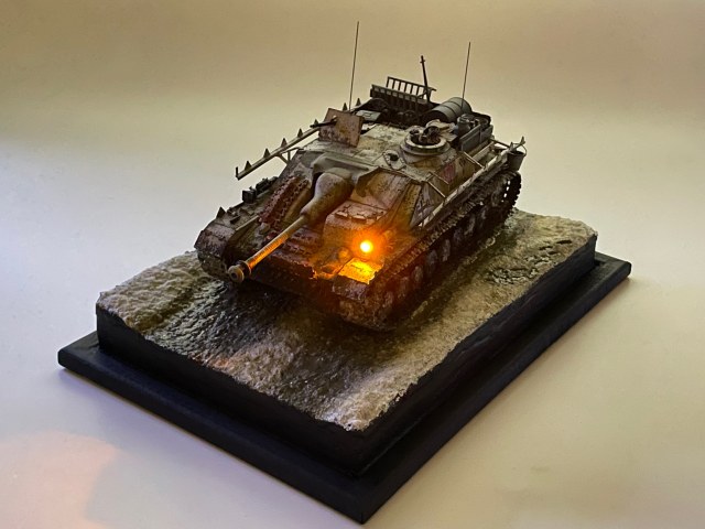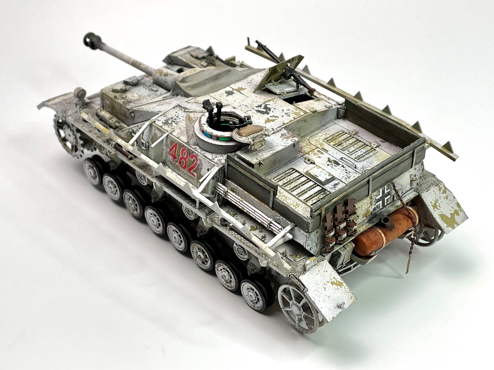 Своим результатом по доработке и сборке модели доволен. По задумке данная самоходка принадлежит 279-ой бригаде штурмовых орудий (Stg.Brig.279). Время действия - конец марта 1945 года, где-то на пути к Инстербургу и Кенигсбергу, где после, в апреле 1945 года, данная часть была уничтожена, а ее остатки сдались в мае советским войскам.