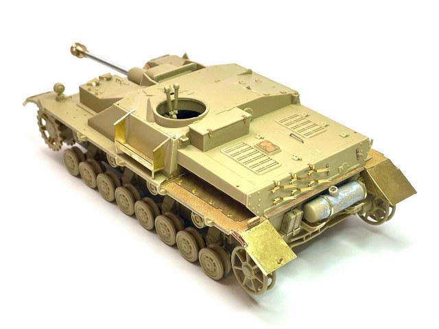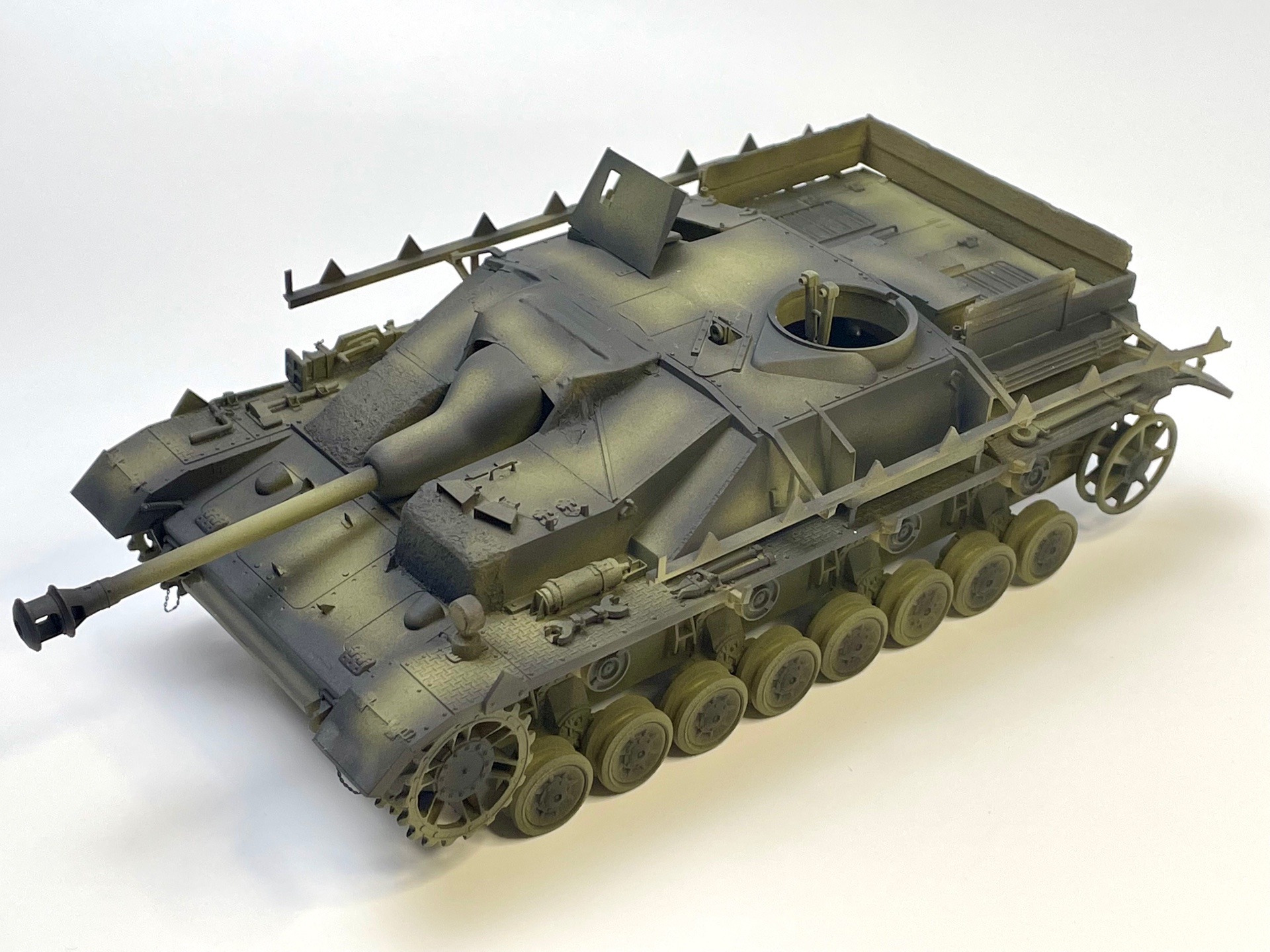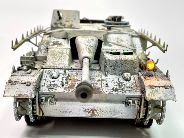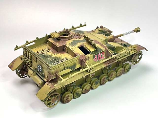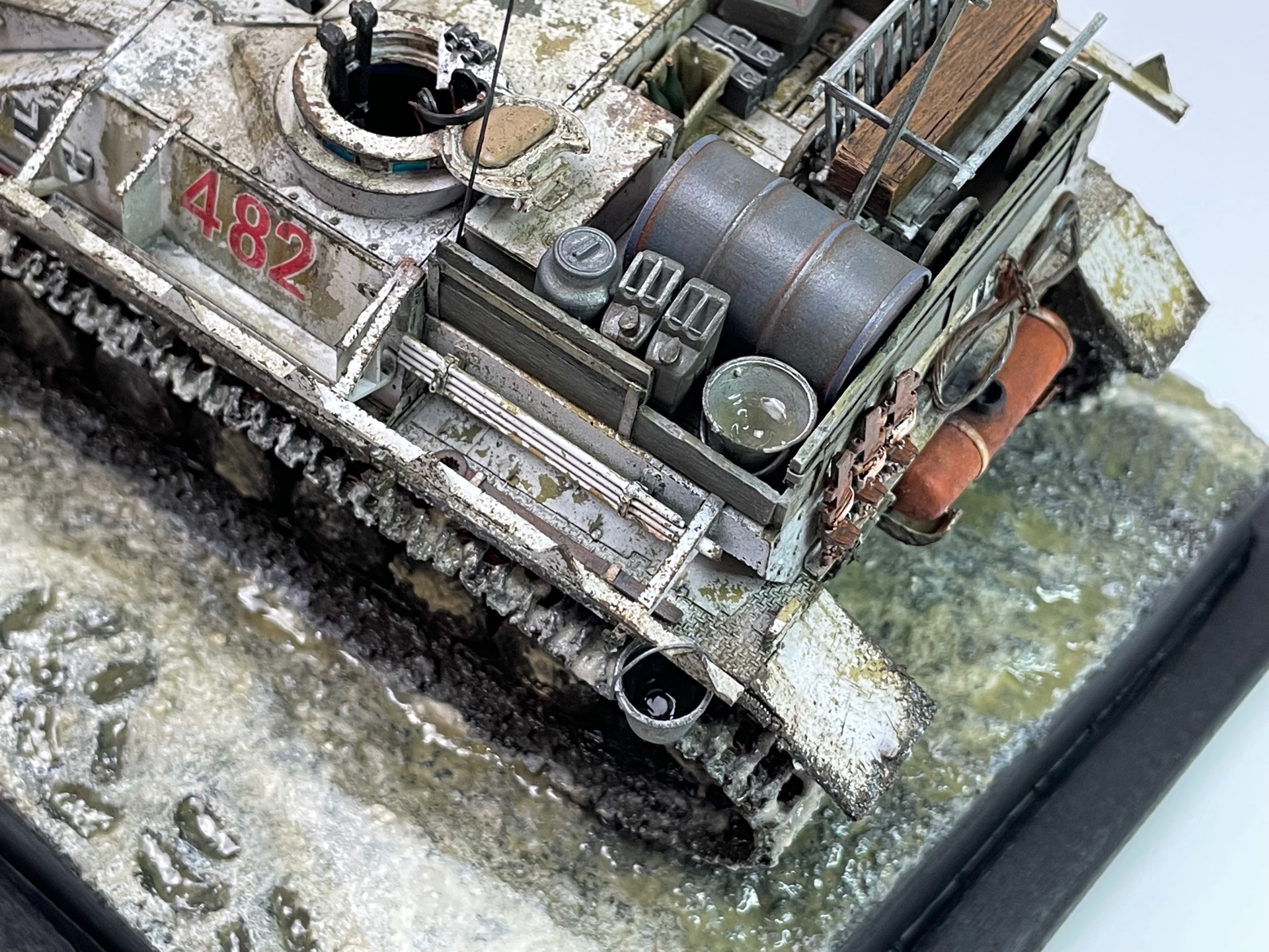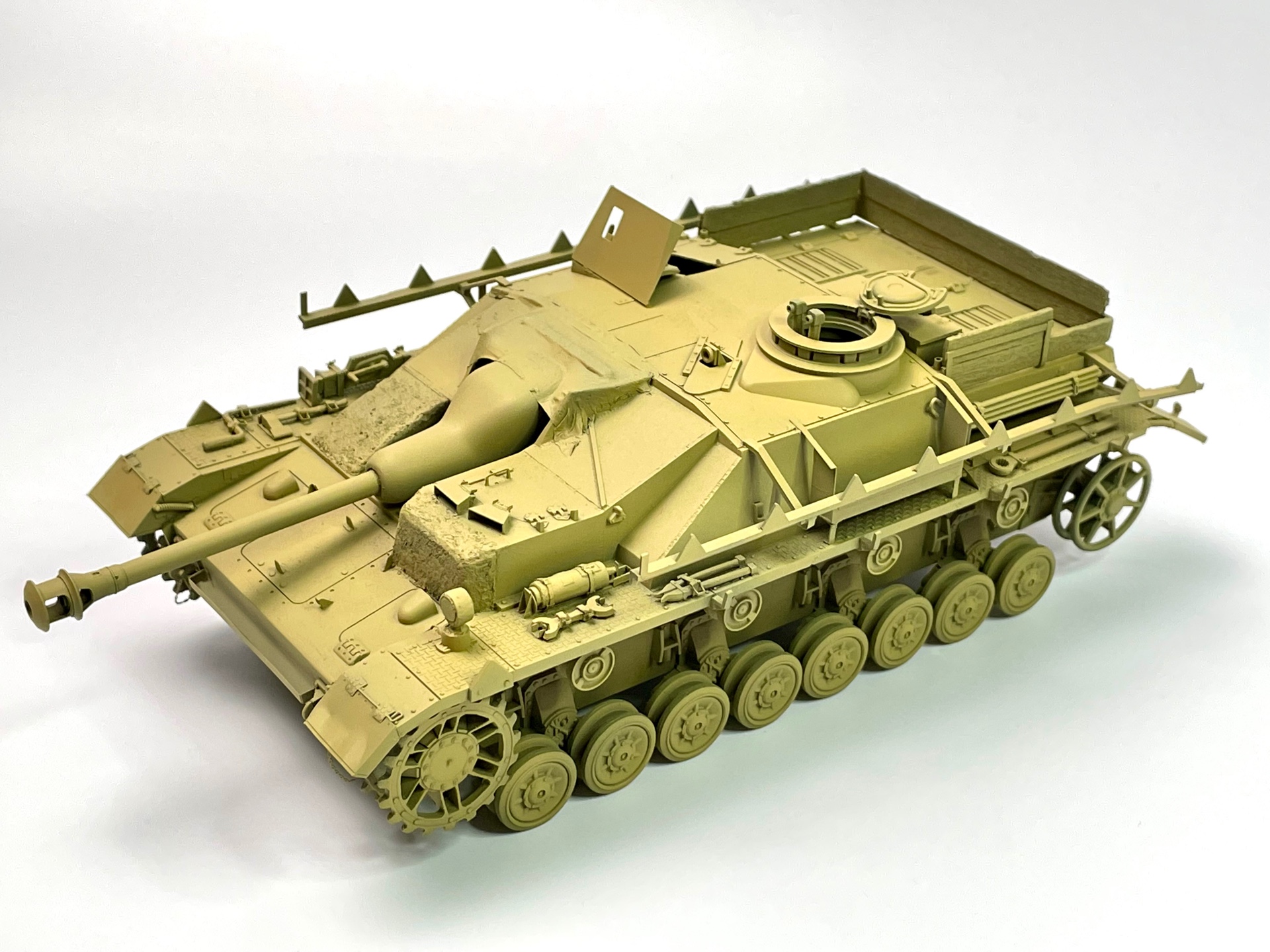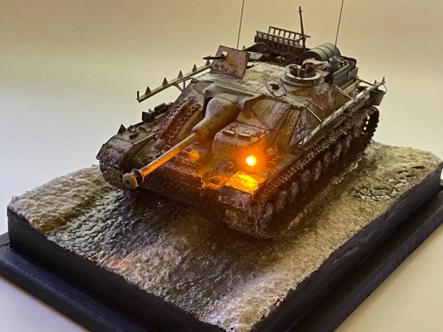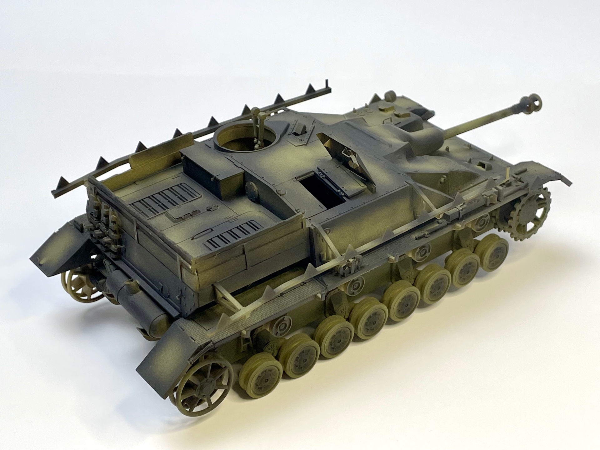 Своим результатом по доработке и сборке модели доволен. По задумке данная самоходка принадлежит 279-ой бригаде штурмовых орудий (Stg.Brig.279). Время действия - конец марта 1945 года, где-то на пути к Инстербургу и Кенигсбергу, где после, в апреле 1945 года, данная часть была уничтожена, а ее остатки сдались в мае советским войскам.