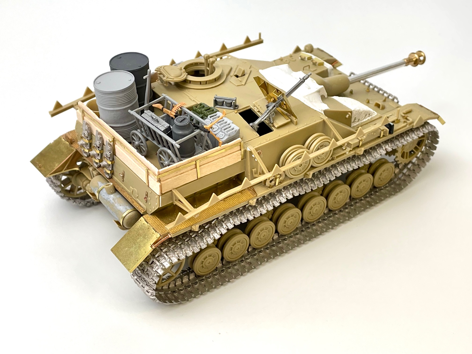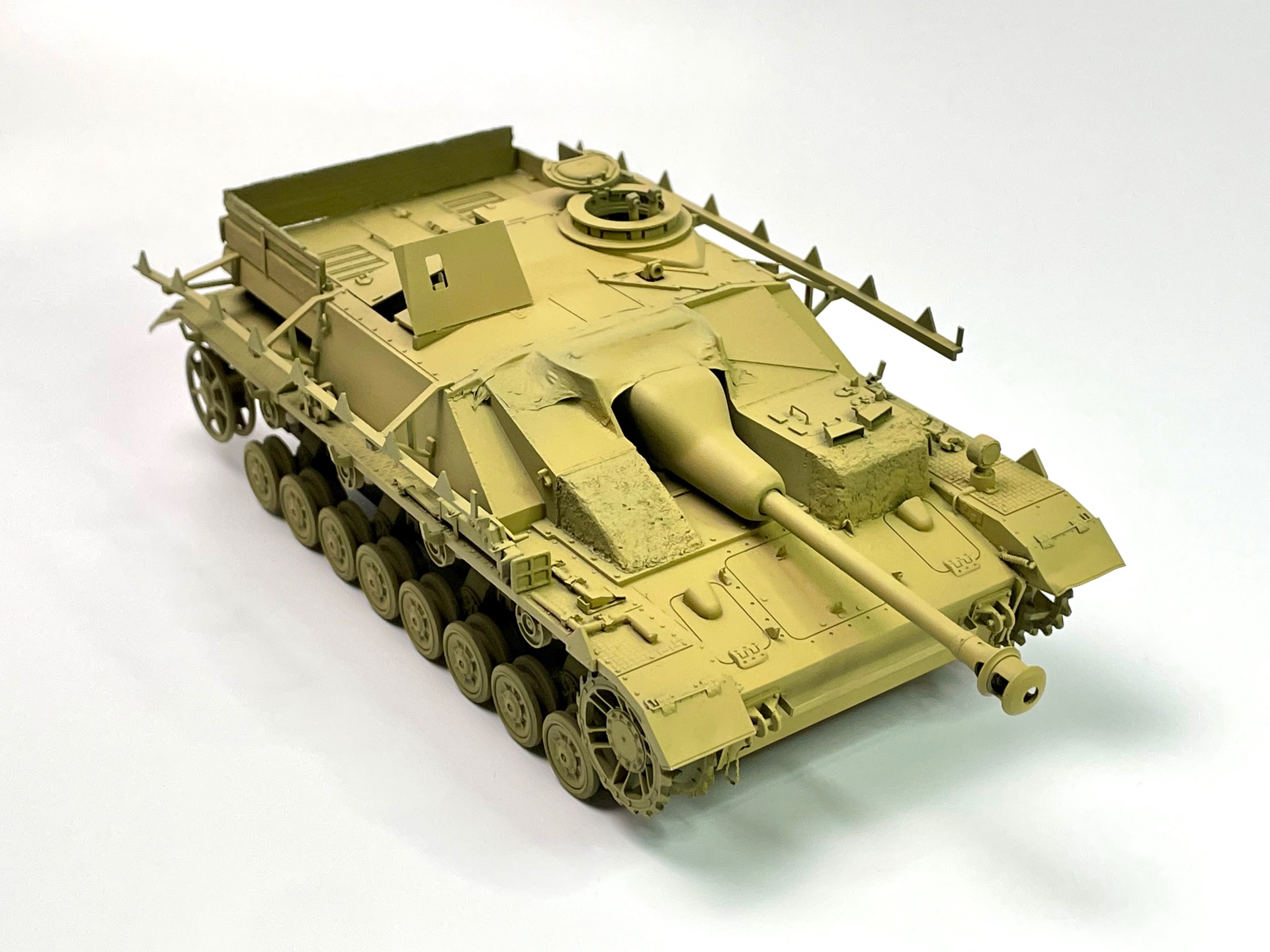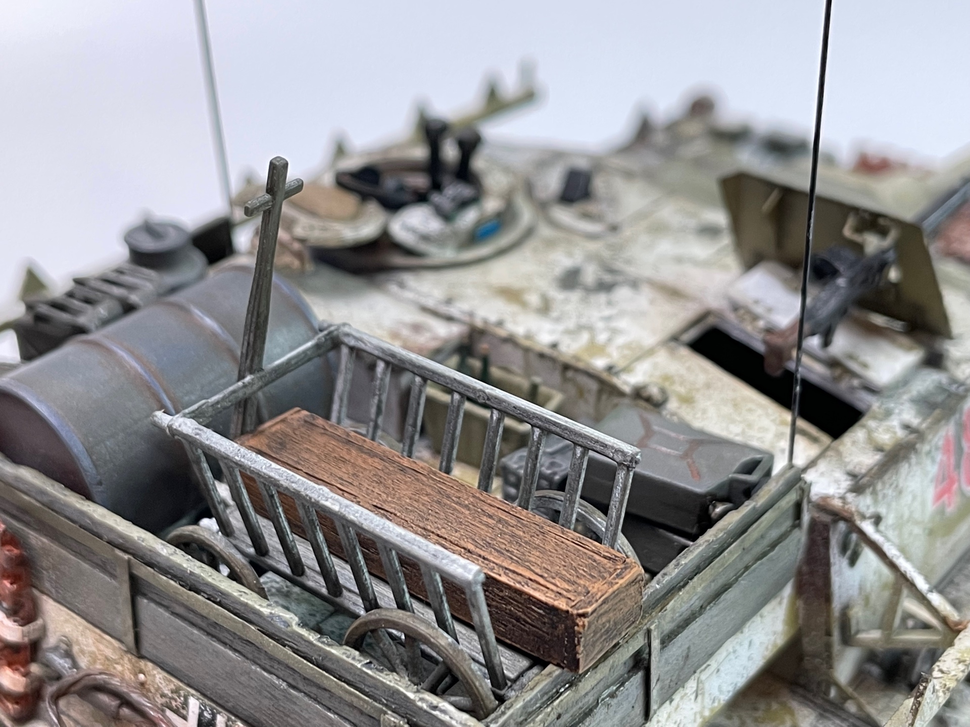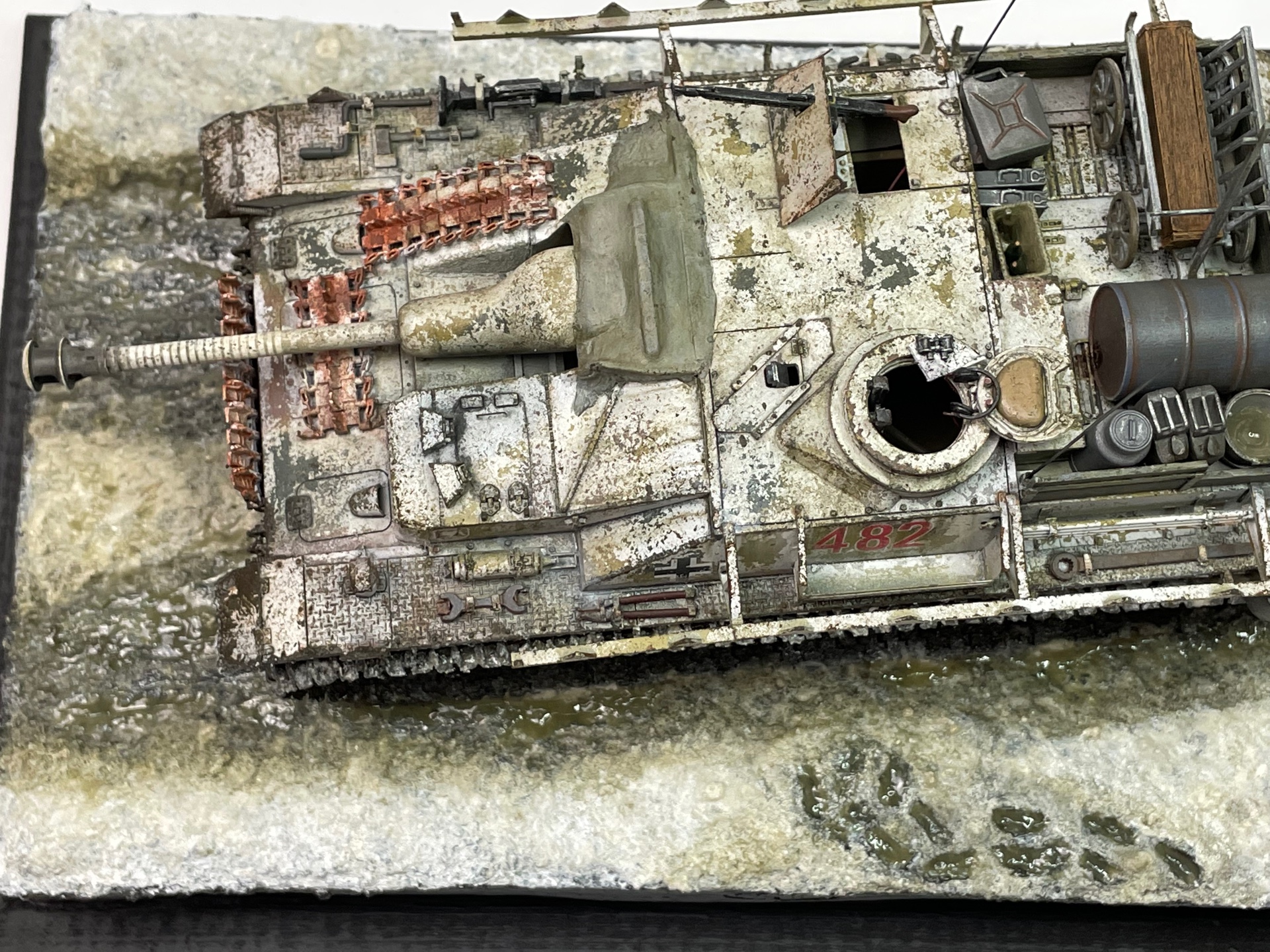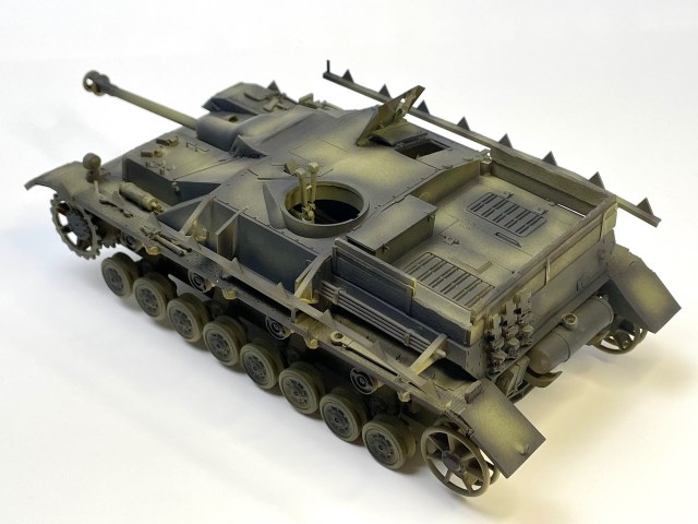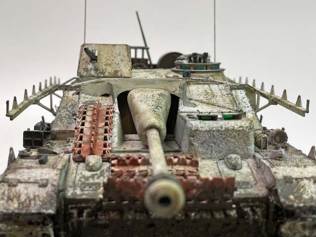 Своим результатом по доработке и сборке модели доволен. По задумке данная самоходка принадлежит 279-ой бригаде штурмовых орудий (Stg.Brig.279). Время действия - конец марта 1945 года, где-то на пути к Инстербургу и Кенигсбергу, где после, в апреле 1945 года, данная часть была уничтожена, а ее остатки сдались в мае советским войскам.