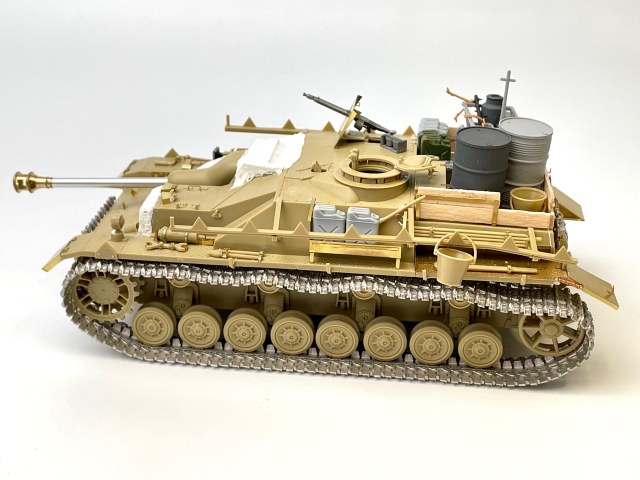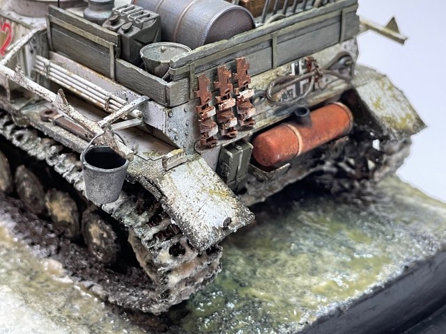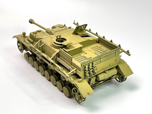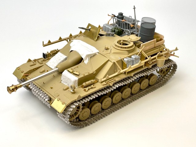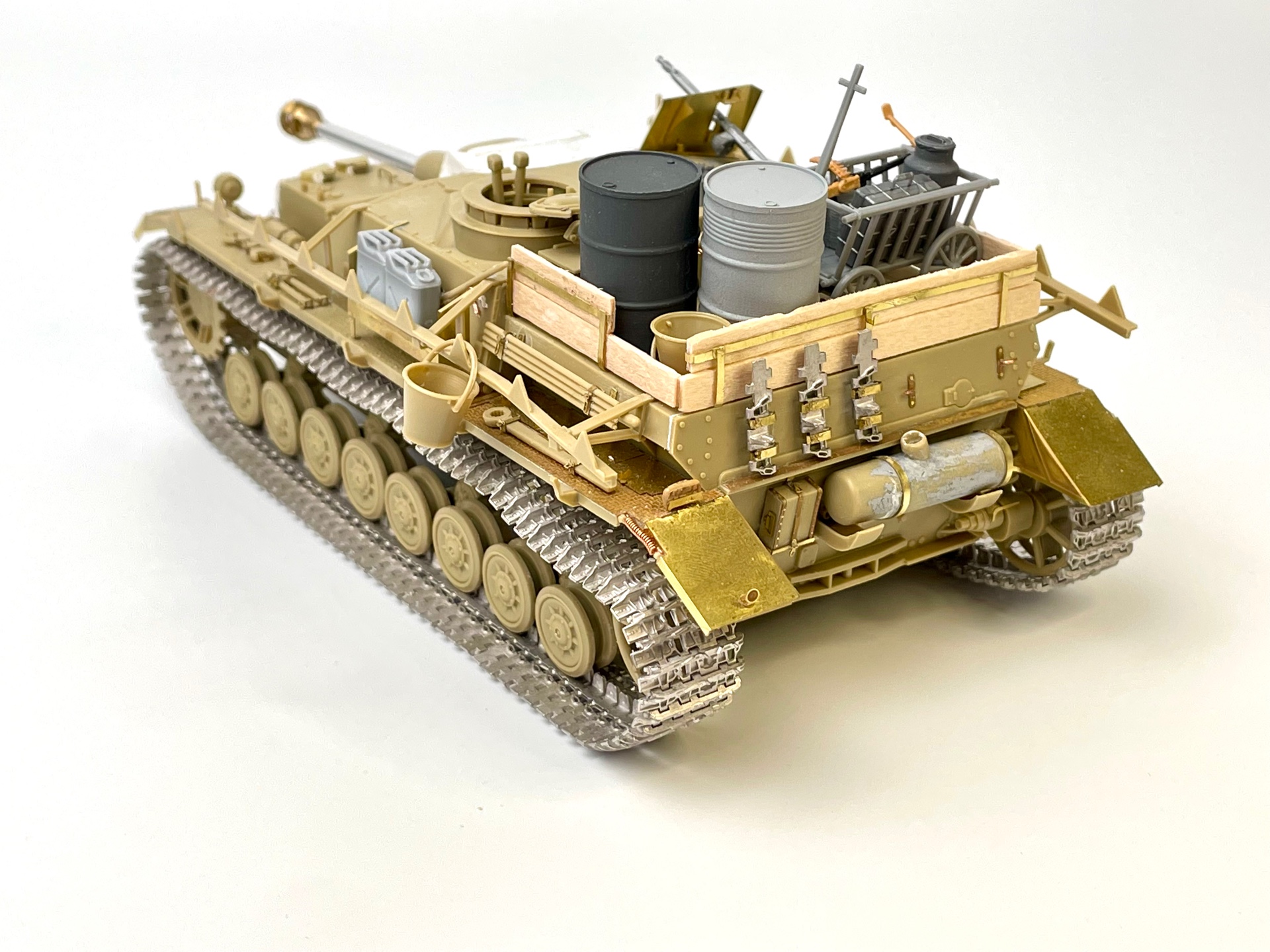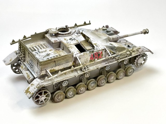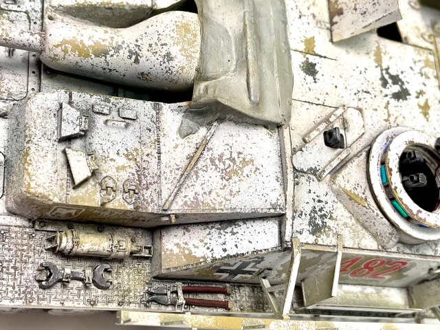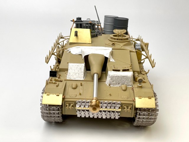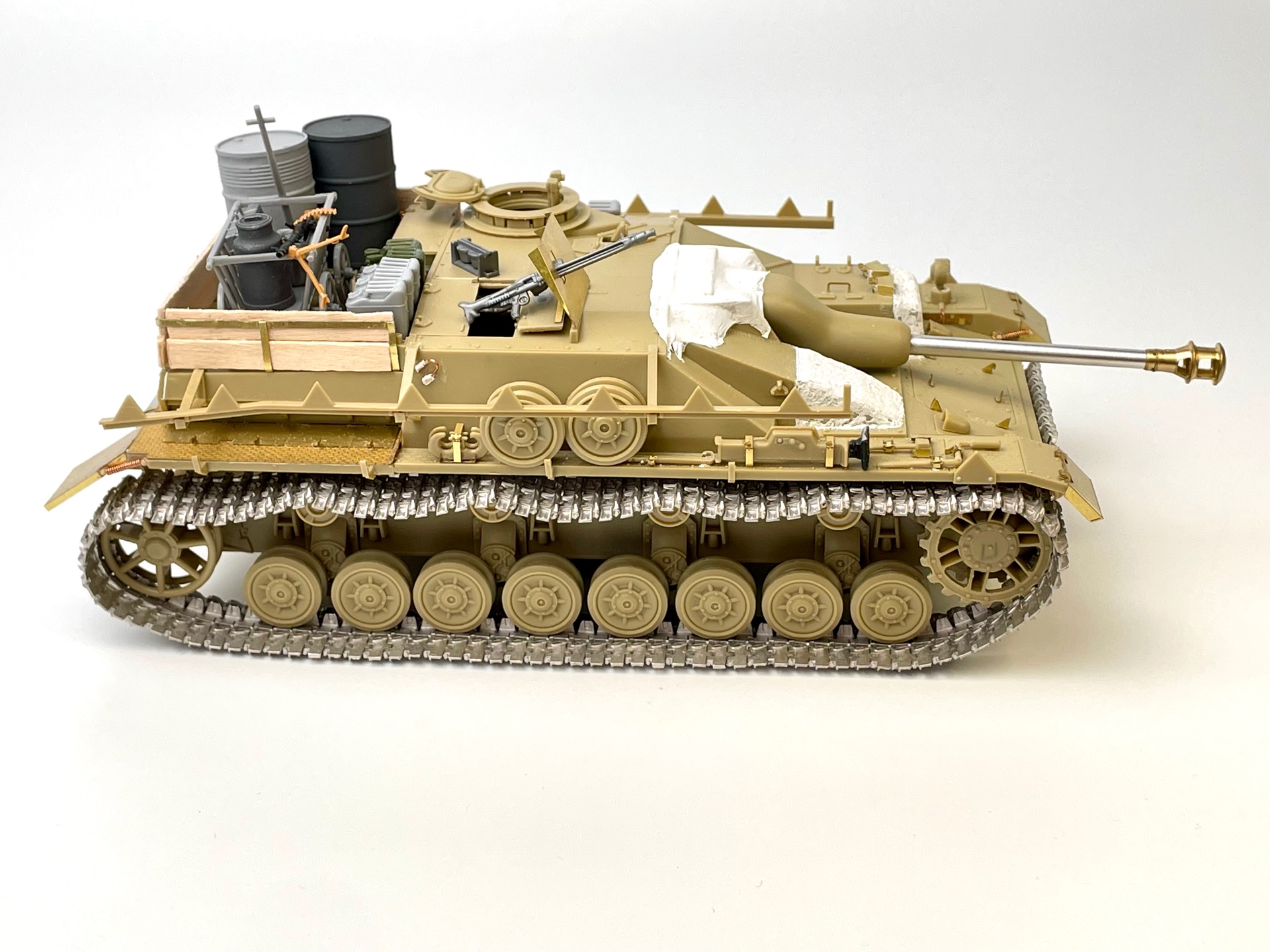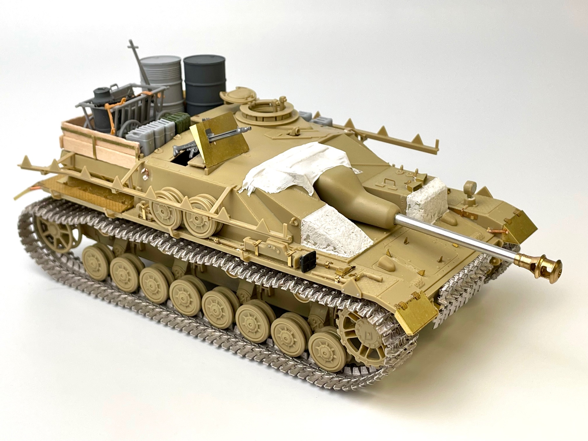 Своим результатом по доработке и сборке модели доволен. По задумке данная самоходка принадлежит 279-ой бригаде штурмовых орудий (Stg.Brig.279). Время действия - конец марта 1945 года, где-то на пути к Инстербургу и Кенигсбергу, где после, в апреле 1945 года, данная часть была уничтожена, а ее остатки сдались в мае советским войскам.