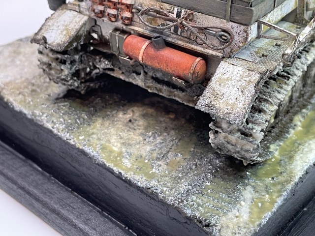 Подставка была исполнена из обычной рамки для фотографий и утеплителя с добавлением эффектов для придания земляной и снежной структуры от фирмы AK: