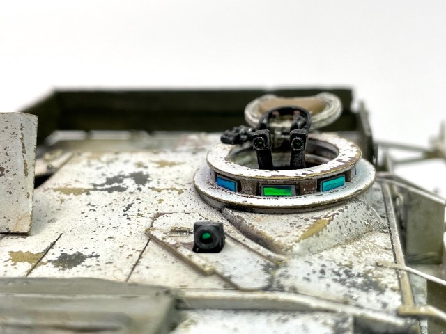 Далее модель была покрыта белой краской XF-2 (белая) с применением той же жидкости для создания эффекта облезания краски, после чего был нанесен слой глянцевого лака от AMMO A.MIG-2053.