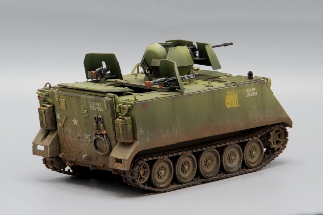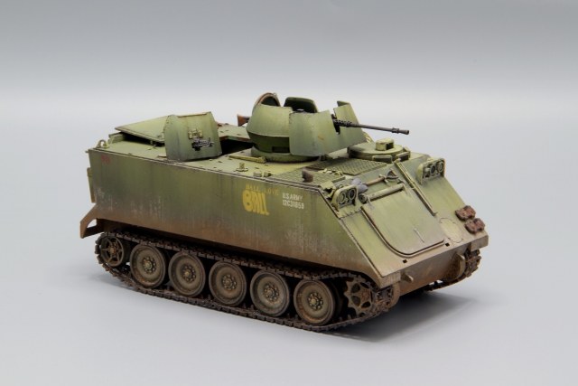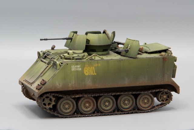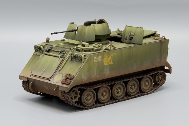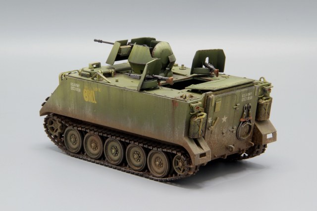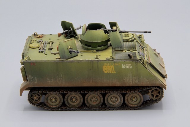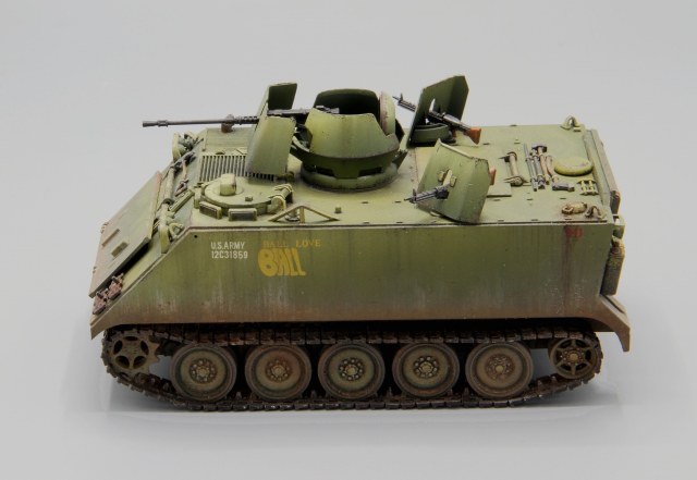 По конкретной работе - добротная, крепкая "изкоробка". Собрано аккуратно, окрашено красиво(за исключением закрашенных "в базу" фар и коричневых прикладов на М-60), матчасти нет.