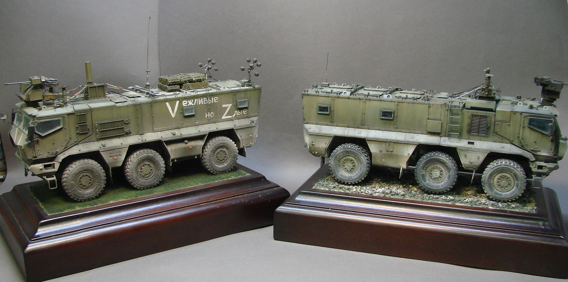 Хорошее исполнение. Но возникает один вопрос, почему литера "V" и "Z" на одной машине одновременно нанесены? На сколько известно, "Z", это юго-восточная группировка, а "V" северо-западная (Киев, Чернигов, Сумы).