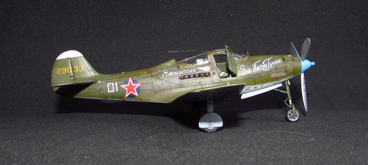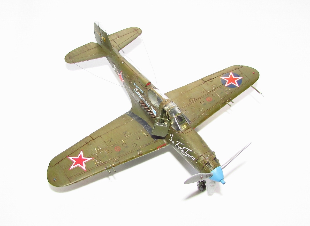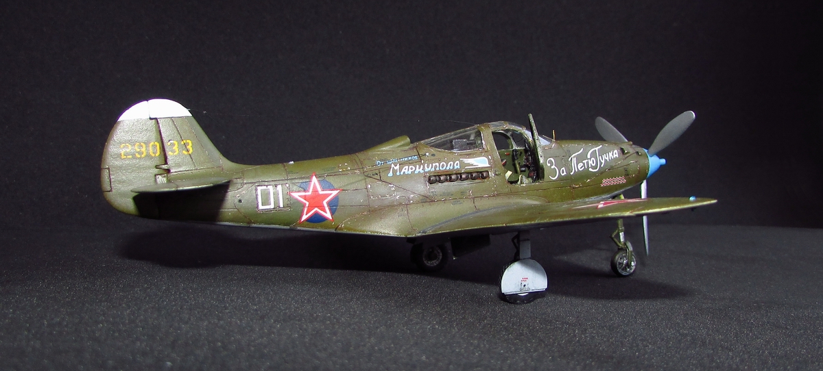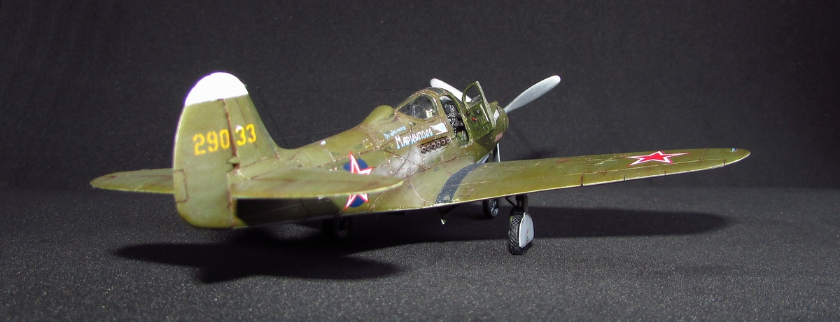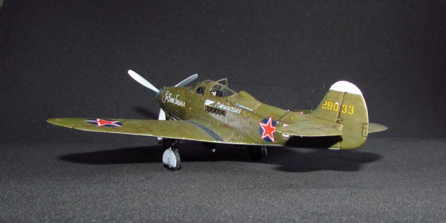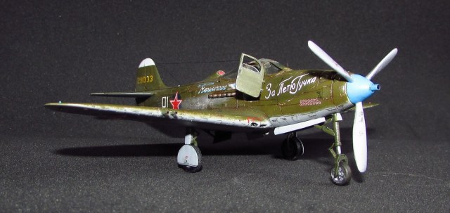 спасибо, она хорошо смотрится потому как из родных деталей тут только фюзеляж (при этом удлинен хвост и утончен, заменен руль и добавлен форкиль, нос с кабиной тоже не избежали напильника) да крыло (уменьшена толщина, заменены элероны, переделано брюхо), плюс кок, лопасти (укорочены и обточены) и колеса основные (придан плоский профиль и нарезан протектор). дверки да прозрачные, но они от Р-63 ТОКО)) вместе с кабиной переделанной. пластик был самый разнообразный - эта салатовая, а в моем детстве был преимущественно желтый по 50 копеек, но вот сейчас такого не встречаю