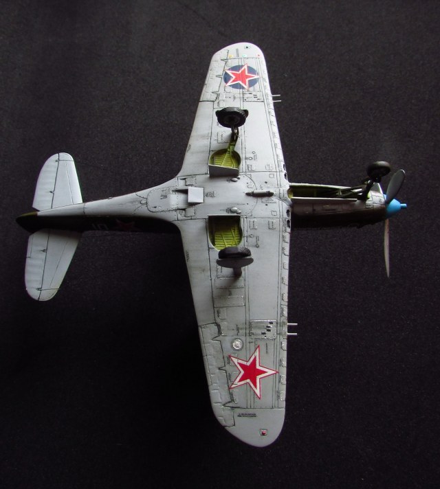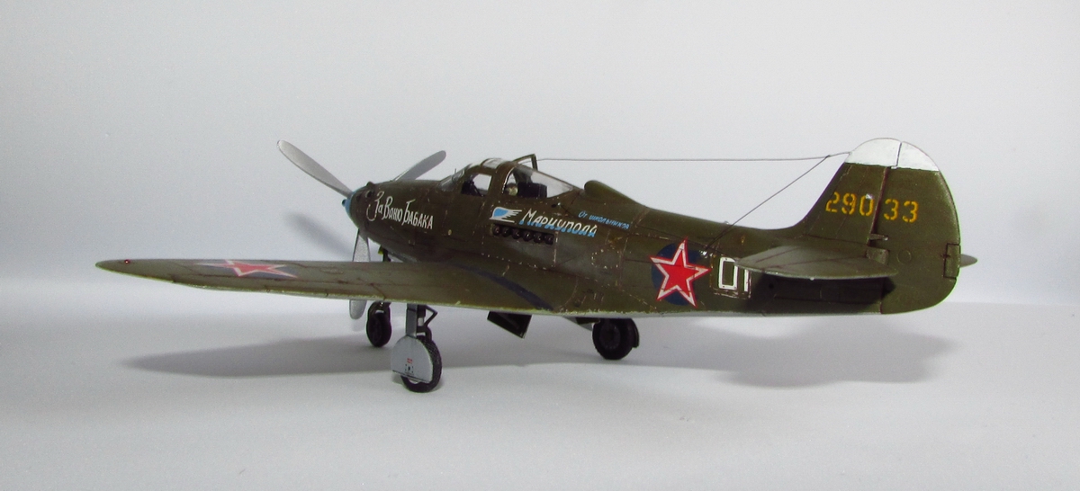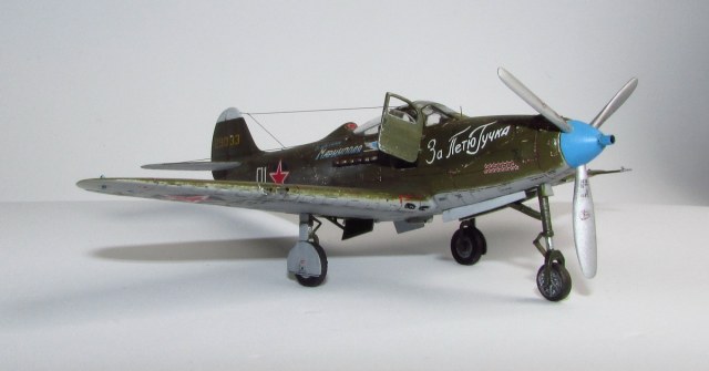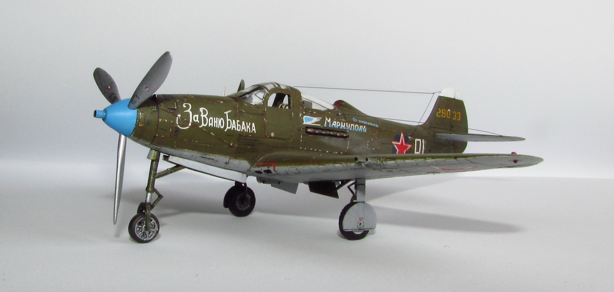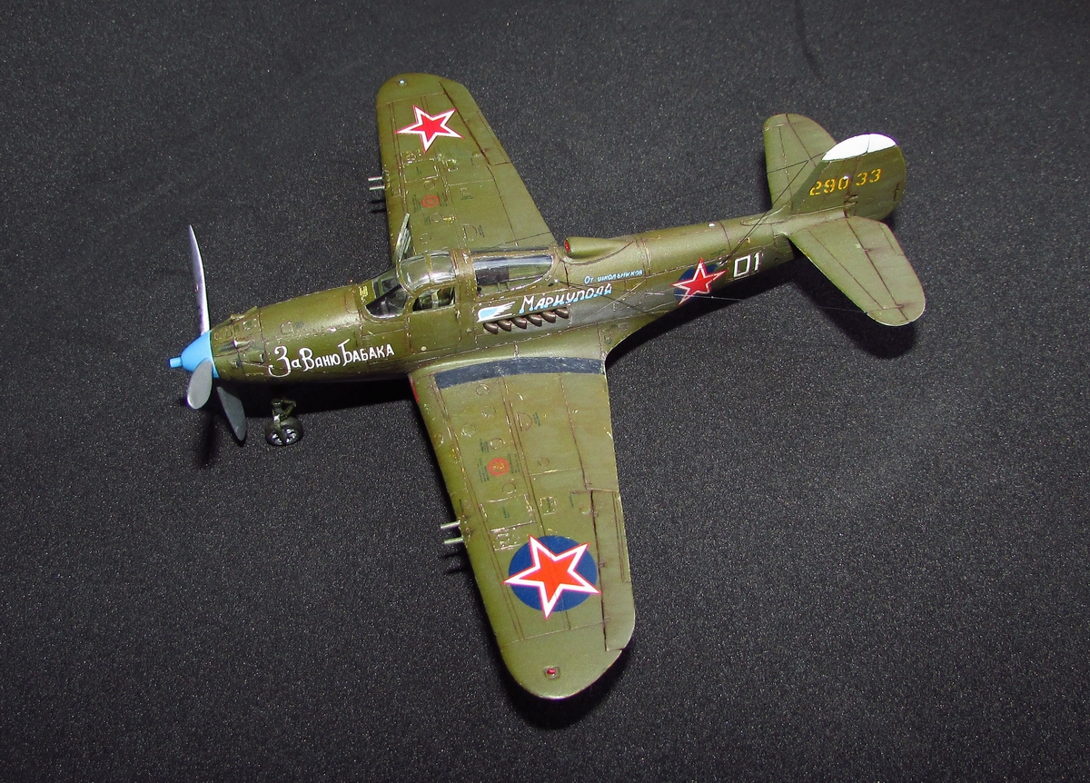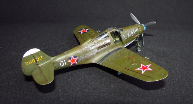 спасибо, она хорошо смотрится потому как из родных деталей тут только фюзеляж (при этом удлинен хвост и утончен, заменен руль и добавлен форкиль, нос с кабиной тоже не избежали напильника) да крыло (уменьшена толщина, заменены элероны, переделано брюхо), плюс кок, лопасти (укорочены и обточены) и колеса основные (придан плоский профиль и нарезан протектор). дверки да прозрачные, но они от Р-63 ТОКО)) вместе с кабиной переделанной. пластик был самый разнообразный - эта салатовая, а в моем детстве был преимущественно желтый по 50 копеек, но вот сейчас такого не встречаю