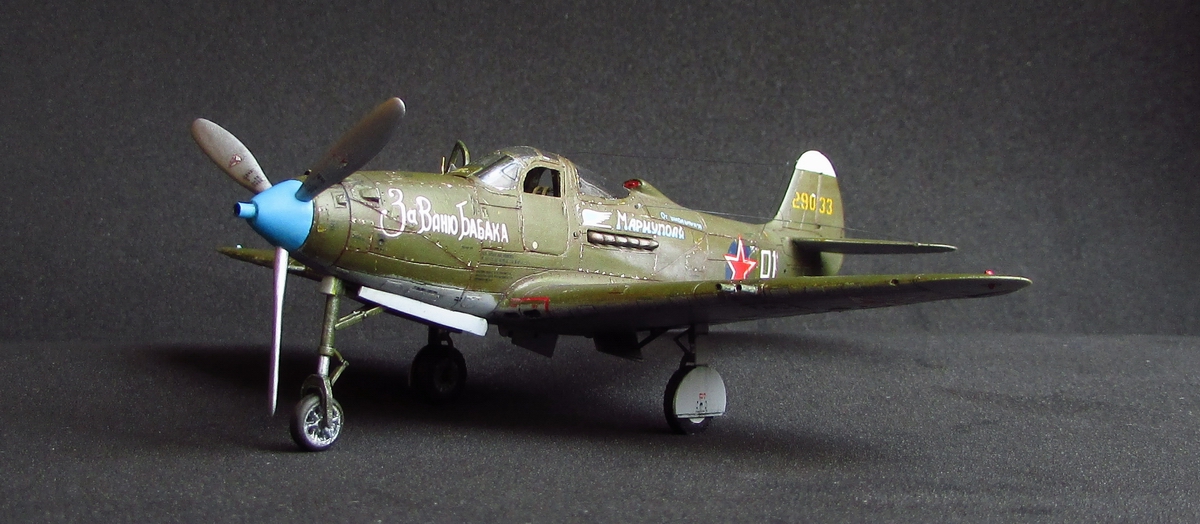 Модель самолета украинца Ивана Ильича Бабака я мечтал воспроизвести давно. Были интересны, как личность бывшего школьного учителя, так и сам самолет... Впервые эту фамилию я встретил в детстве в мемуарах А.И.Покрышкина. Он успел получить под командование знаменитый "Покрышкинский" полк и был «сбит»... Огнем с земли, как считалось долгое время (по первому докладу наверх), но согласно крайней публикации на тему - ведомый не зафиксировал работы ПВО и самолет скорее всего загорелся в результате одного из дефектов (оказывается были и такие на хваленой американской технике) "Аэрокобры" - обрыв шатуна двигателя. Бабак вынужден был выпрыгнуть из горящего самолета над территорией противника и попал в плен. "Когда бежал от бани к самолёту, ордена свои я не успел нацепить, не до того было, - вспоминал позднее Бабак. - Ну и решил выдать себя за рядового лётчика. А они слушают мои байки и смеются. Потом дают мне альбом с фотографиями наших асов - истребителей, где на первом месте красовался портрет Покрышкина, ну и моя личность там тоже оказалась...". Был освобожден из концлагеря советскими войсками... "Покрышкин вернул мне мою офицерскую книжку, награды, я снова принял командование полком. А тем временем Александр Покрышкин, это чрезвычайно храбрый человек, как в бою, так и в жизни договаривается, чтобы меня никуда не отправили. Пока был Покрышкин - так и было. Но вскоре его отозвали в Москву. А через несколько дней я получаю пакет под сургучом о командировке в Алкин - небольшую станцию ...под Уфой. В лагерь для бывших военнопленных...". В итоге отпустили, но особисты не оставляли в покое и демобилизовался в 1949 году, вернувшись к учительству. При этом ни учителя, ни дети, не знали, что их преподаватель химии, скромный и немногословный Иван Ильич Бабак - один из лучших асов Великой Отечественной войны, одержавший 35 личных и 5 групповых побед в 103 боях. Узнав об этом, на одной из встреч ветеранов 9-й ГвИАД в Киеве, Александр Покрышкин возмутился: "Ну, знаешь ли, друг любезный, от такой твоей скромности гордыней и обидой на весь свет отдаёт. "Золотую Звезду" тебе вручили не для того, чтобы ты её в шкатулке прятал! Вот тебе дубликат, у меня ещё есть, и будь добр носить её и пацанов на примере своих подвигов воспитывать".