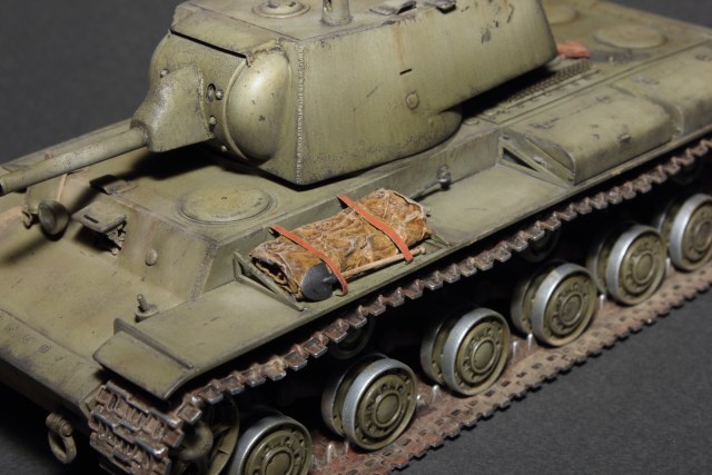 В процессе стройки заменил ствол орудия на металлический от "Zedval", маску орудия на смоляную, так же от "Zedval" (они были комплектом). Траки взял от "Восточного экспресса", но они ужасны. Трак в трак не встаёт, я подтачивал каждый, плясал с бубном, но всё равно собиралось криво-косо, победить до конца я их не смог, но зато получил нужный мне провис. Впрочем, можно было бы сделать провис и на прямых как палка траках от "Звезды". Надо будет попробовать. Опорные катки так же заменил, взяв их с набора от "ВЭ". Эти более соответствуют прототипам, поддерживающие тоже сменил, а вот сами балансиры пришлось оставить, несмотря на несоответствующие крышки ступиц нужному периоду. Изобразил резьбу на натяжительных устройствах ленивца, но тут не видно совсем. Поменял сеточки с МТО на самодельные, вышло не очень, но мне нравится. Кое-как изобразил гужоны на планке стыка передних бронеплит, Вставил сеточку на корму танка. Убрал передний пулемёт и его бронемаску с лобового листа танка, заменив отверстием для стрельбы из личного оружия и вставил заглушку, кое-где по корпусу восстановил или с нуля нанёс сварные швы. На башне изменил бронемаску кормового пулемёта, но она получилась меньше чем нужно, не сразу понял, когда это бросилось в глаза, менять было поздно, смирился. Заменил пулемёт в ней на нечто из иголочки и проволочки. Не очень доволен, но решил оставить. Сымитировал сварные швы по бокам башни, убрал имитацию гужонов на башне, убрал планки по бокам бронемаски. Козырёк над ней сделал из пивжести. Тросы решил не ставить, так как ниточка не приемлема, и коуши в наборе не те. Нужных в закромах не оказалось. Пусть будет так. Что бы танк не был совсем голый, из салфетки с ПВА и полосок пивжести сделал скатку на борт, нашёл в закромах лопату и присовокупил туда же. Нашёл ящик для СМК от Такома и сделал из него деревянный.