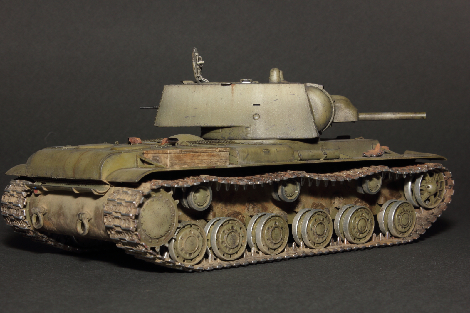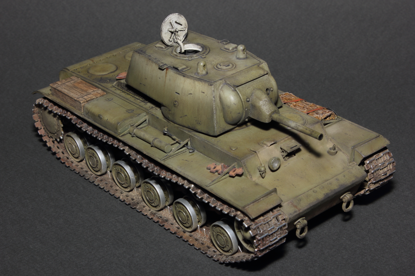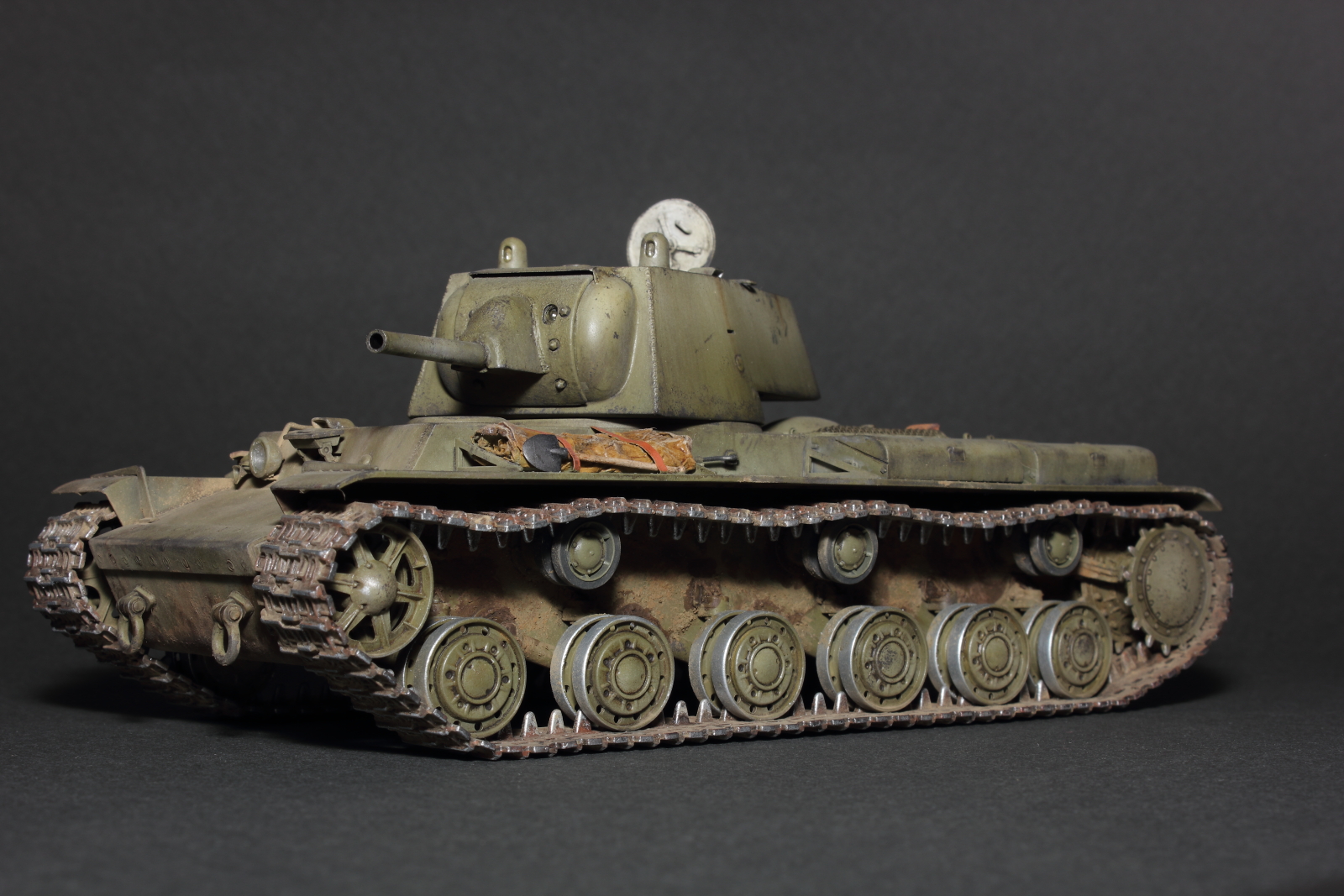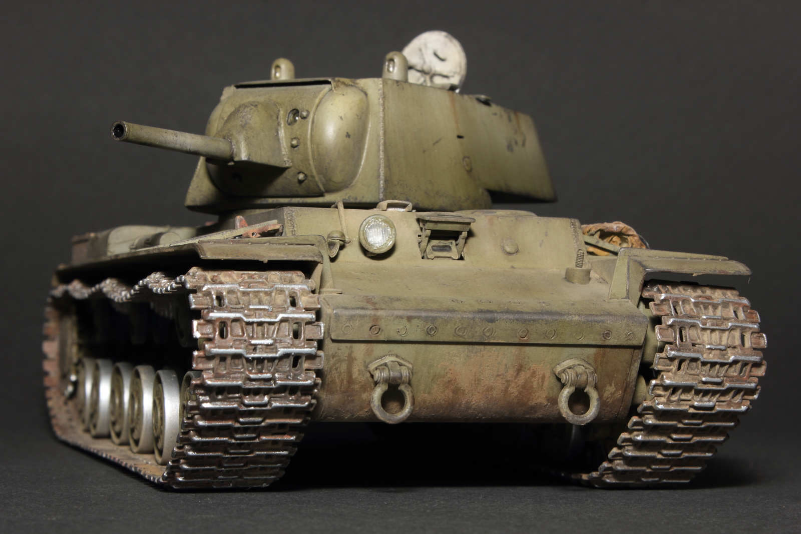 Добрый день, коллеги-моделисты. После небольшого полугодового перерыва представляю свою новую поделку, модель тяжёлого советского танка КВ-1 образца 1940 г. с орудием Л-11. Набор всем известный, от компании "Звезда". Сам танк тоже всем известный, так что рассказывать о нём что-то совсем нет смысла. Набор же от ""Звезды" один для трёх вариантов танка, за исключением ряда деталей, посему несёт в себе одни и те же косяки и ошибки, некоторые из которых, я, в силу своей распущенности, попытался подправить, хотя в матчасть я старался не углубляться и заклёпки не считал.