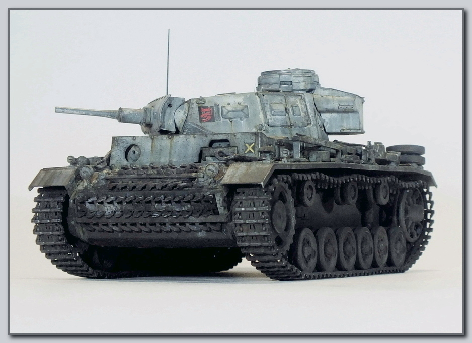 Приветствую друзья,предлагаю к просмотру очередную мою работу,из такскать недавних,относительно недавних-закончил ее 31-декабря прошлого года,и вот наконец появилось вдохновение (и освещение),чтобы ее поснимать.Набор довольно известный,но почему стоит на коробке (Тр),я не понял.В общем решил собрать командирский танк модификации J.Сборка проходила довольно таки быстро,с нормальной стыкуемостью деталей.Единственное,почему-то в наборе оказались две разные половинки башни,точнее другой был верх.Пришлось очень сильно пилить,в т.ч. посадочные места боковых люков.В общем худо-бедно,башня приобрела нормальный вид.Затем задумался о покраске.Выбор пал на 5-ую танковую дивизию,и тут меня с толку сбил справочник определитель "Танковые дивизии Вермахта",где на глаза попался боковик машины в сером цвете.Задумано-сделано,танк серый,с декалями 5 ТД.И тут умные люди мне подсказали,что этой модификации в 5ТД ,в сером цвете не было((Хотел сделать Сталинградский вариант,но декали прилипли намертво!Соскабливать и перекрашивать особого желания не было,так,что решил оставить как бред воспаленного сознания.стройка велась здесь https://karopka.ru/forum/forum261/topic31812/?PAGEN_1=2