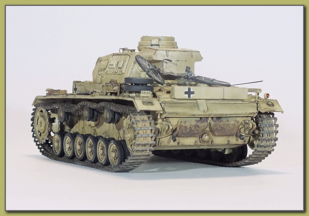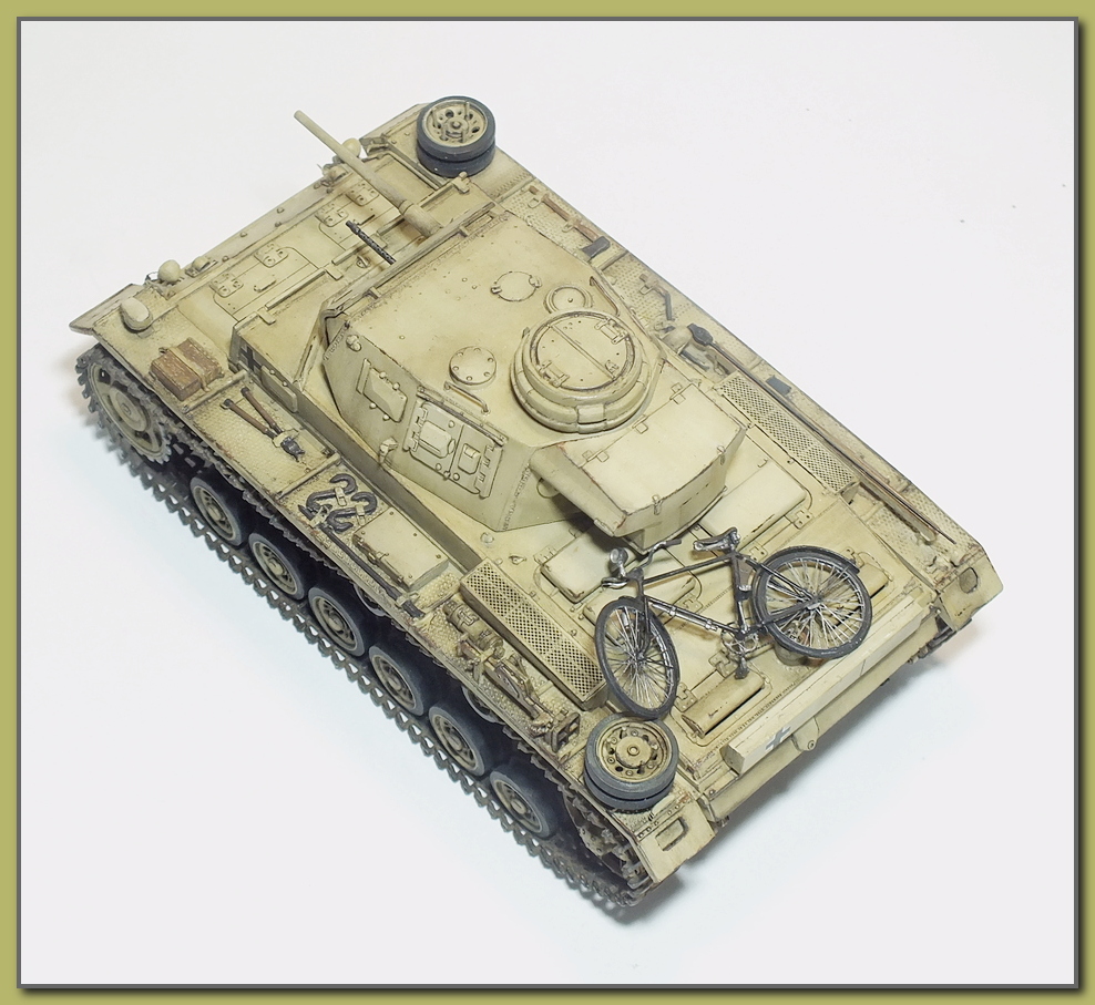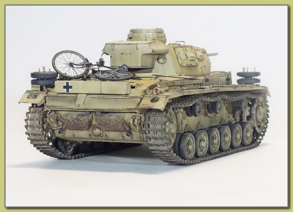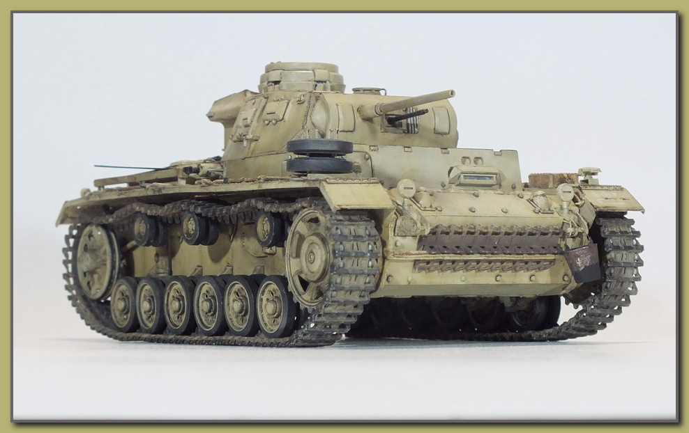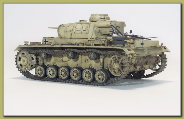 И снова здравствуйте.На этот раз представляю танк передовых артиллерийских корректировщиков на базе Panzer III Ausf H.До 1943-го года для этих целей использовали полугусеничные бронеавтомобили,однако эти машины были слишком уязвимы."ПолугусеничникИ" заменили специализированные конверсии на базе тройки."Panzerbeobachtungswagen III "(бронированная машина наблюдателя),На этом варианте пушка демонтировалась,а вместо нее в шаровой установке маски пушки устанавливался пулемет.;справа от пулемета (тоже в маске)-фальшствол орудия.Вместо курсового пулемета имелась амбразура для стрельбы из личного оружия.Радиооборудование включало в себя р/c FuG-4 и FuG-8.Антенна радиостанции FuG-8,такая же как на последних вариантах командирских танков-располагалась на крыше моторного отделения.На крыше башни под бронеколпаком монтировался перископ TBF-2.Экипаж состоял из корректировщика огня артиллерии,его помощника,двух радистов и механика водителя.Как правило эти машины использовались батареями 150 мм. САУ "Хуммель" и 105 мм. САУ "Веспе",входившими в состав панцердивизий.С начала 1943-го года по весну 1944-го прошли переоборудование в Беобахтунг 262 танка панцер III,номер шасси при модернизации не менялся.В 1943-ем году было построено небольшое количество данных машин с 60-ти калиберными пушками kWk 39.