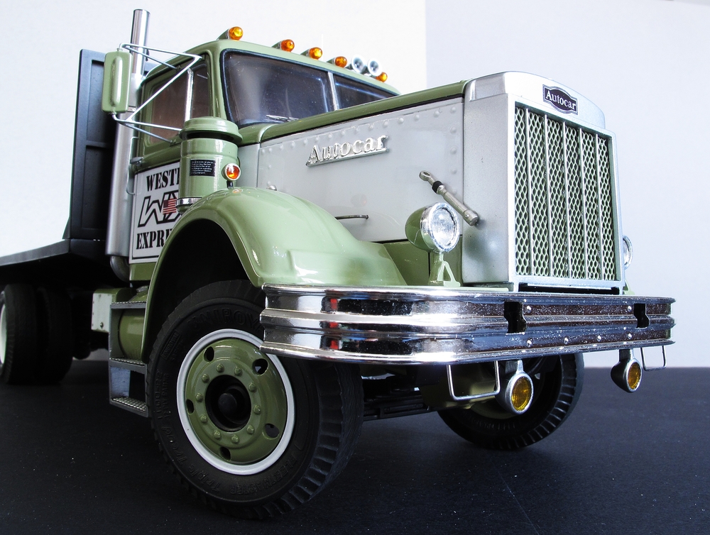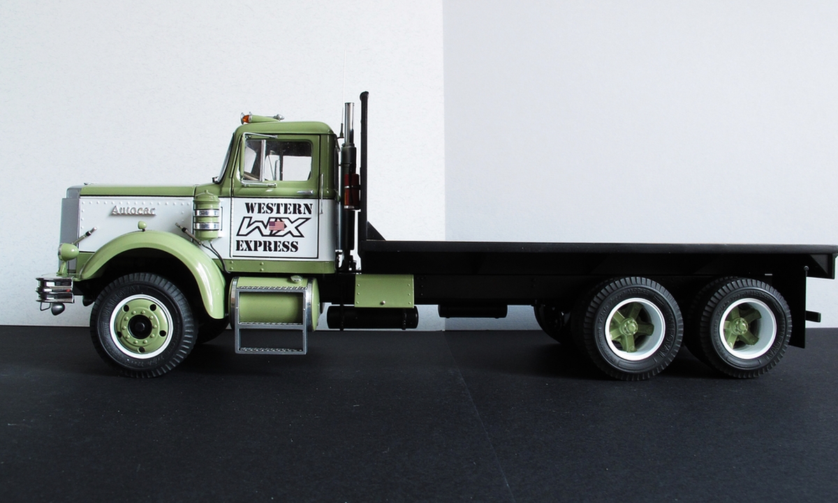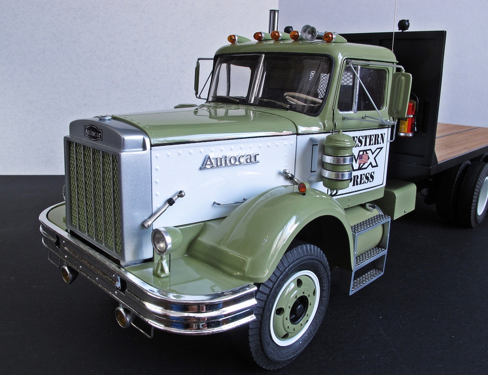 Приветствую уважаемое сообщество!Давненько я ничего не публиковал.Представляю на ваш суд свою крайнюю работу Autocar A64B от АМТ.В данной сборке отошел от традиции собирать из коробки,основная доработка это кузов Flat bed,удлиненная рама,изготовленный новый кардан ,доработанная немного кабина,паяные кронштейны зеркал , все остальные доработки-переделки это в основном борьба с самим АМТ.Покраска ,как обычно профессиональные авто краски и 2к авто лак.