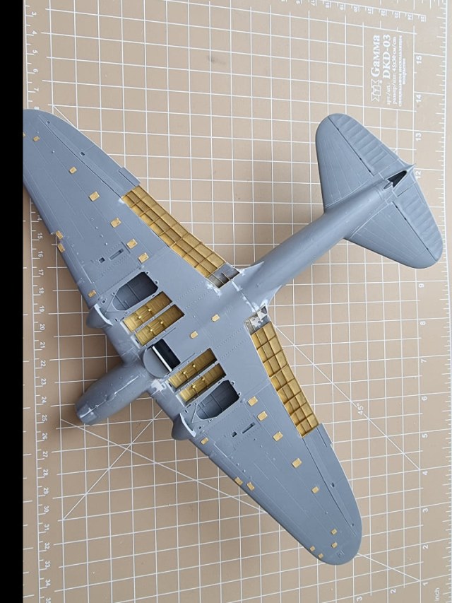 В работе использовал фототравление от Микродизайна - закрылки, лючки, бомбоотсеки, бомбы и РС, интерьер -3D декаль от Qunto Studio, смоляные патрубки, колеса под нагрузкой - от Э.В.М. Впервые поэкспериментировал с 3D заклепками от АМ.