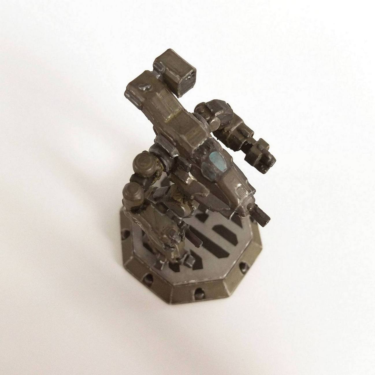 Модель робота, не моя скачана с одного из сайтов моделей. Распечатана на 3D принтере Anycubic из PETG пластика толщина слоя 0,1 мм высота модели 80 мм. На модели отрабатывал приемы окраски, поэтому присутствует и шагрень и манка, со сколами тоже экспериментировал, сначала сделал сухой кистью показалось мало..... Но в общем я результатом доволен. Хотя конечно эта технология печати для миниатюры не очень подходит.