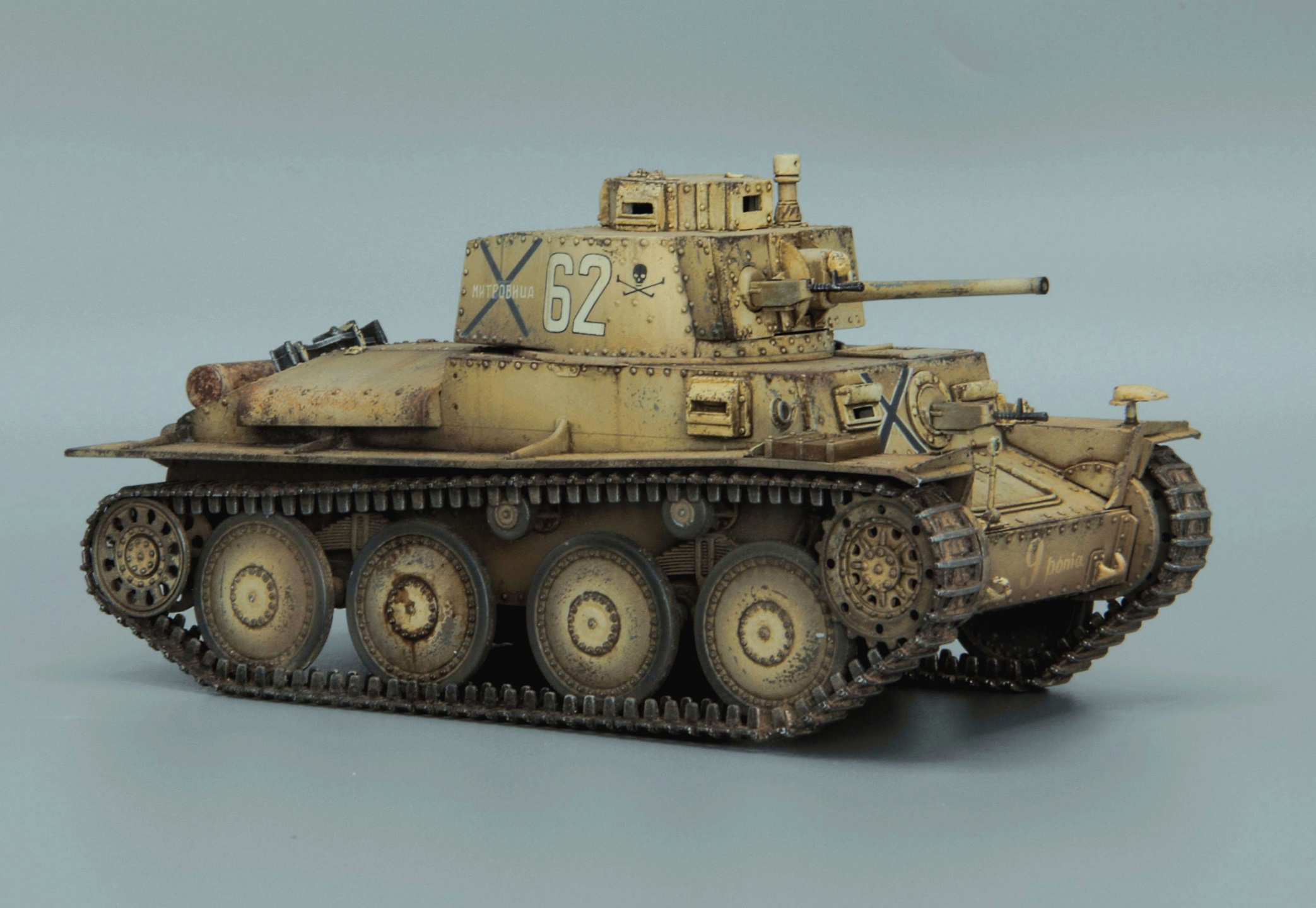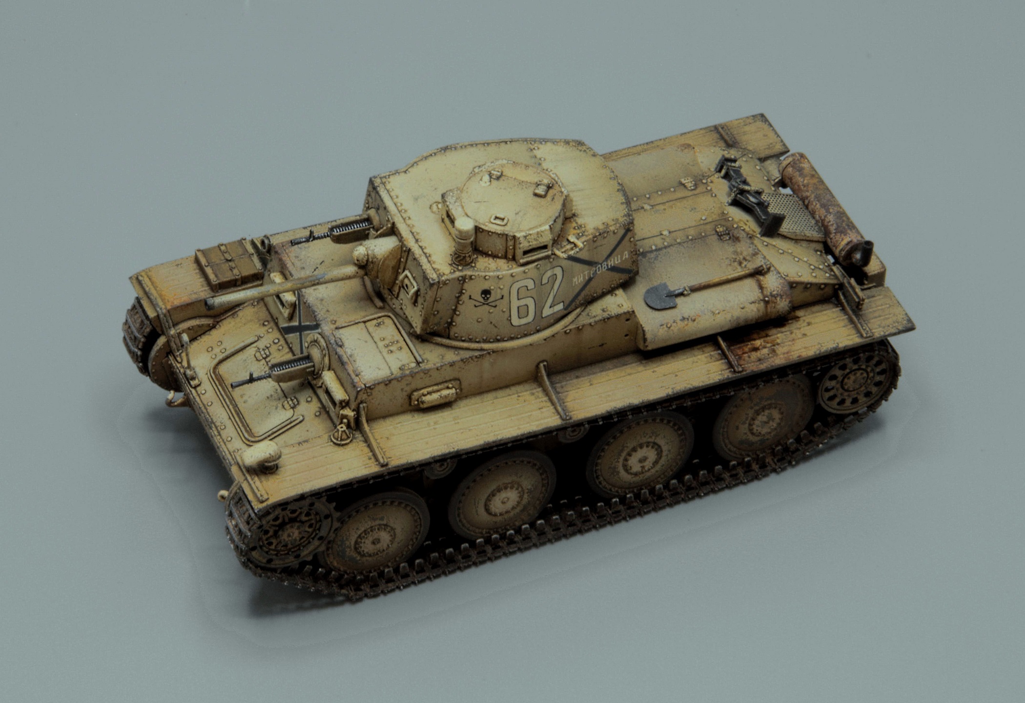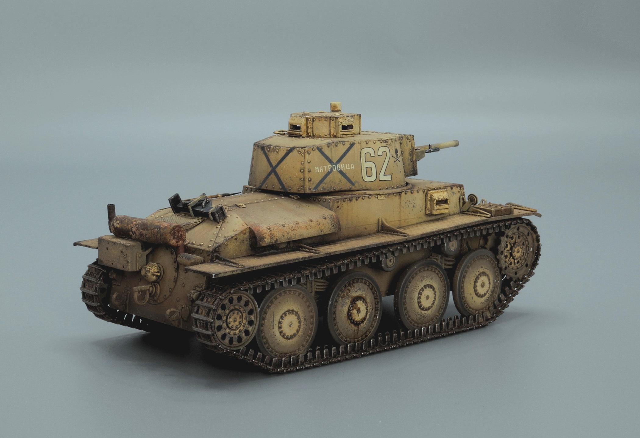 Модель (каталожный номер 6489) была куплена много лет тому назад. Тогда поразила точеным стволом, фототравленной решеткой, интерьером....Однако теперь она выгладит довольно просто. Отсутствие даже намека на триплексы, гусеницы собираются из секций, которые плохо имитируют провис, но хуже всего, что они еще и плохо соединяются. Собрано полностью из коробки, как сказал один хороший человек матчасти нет, да и фиг с ней, декаль от Bison decals, показывает болгарский танк 1 танкового полка, 1 танковой бригады 1944 года. Старался показать изношенность машины, сильно эксплуатировавшейся на протяжении 5 военных лет. Окраска Тамией и Ганзой, затем фильтр, и всевозможная химия. Трудно далась фото сессия, под разными углами съемки, на выходе получался танк и массой вариантов оттенков. Старался привести все более менее к естественному цвету.... "не стреляйте в пианиста, он играет как умеет"))).