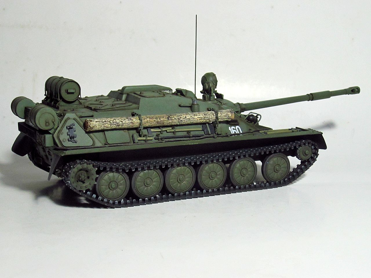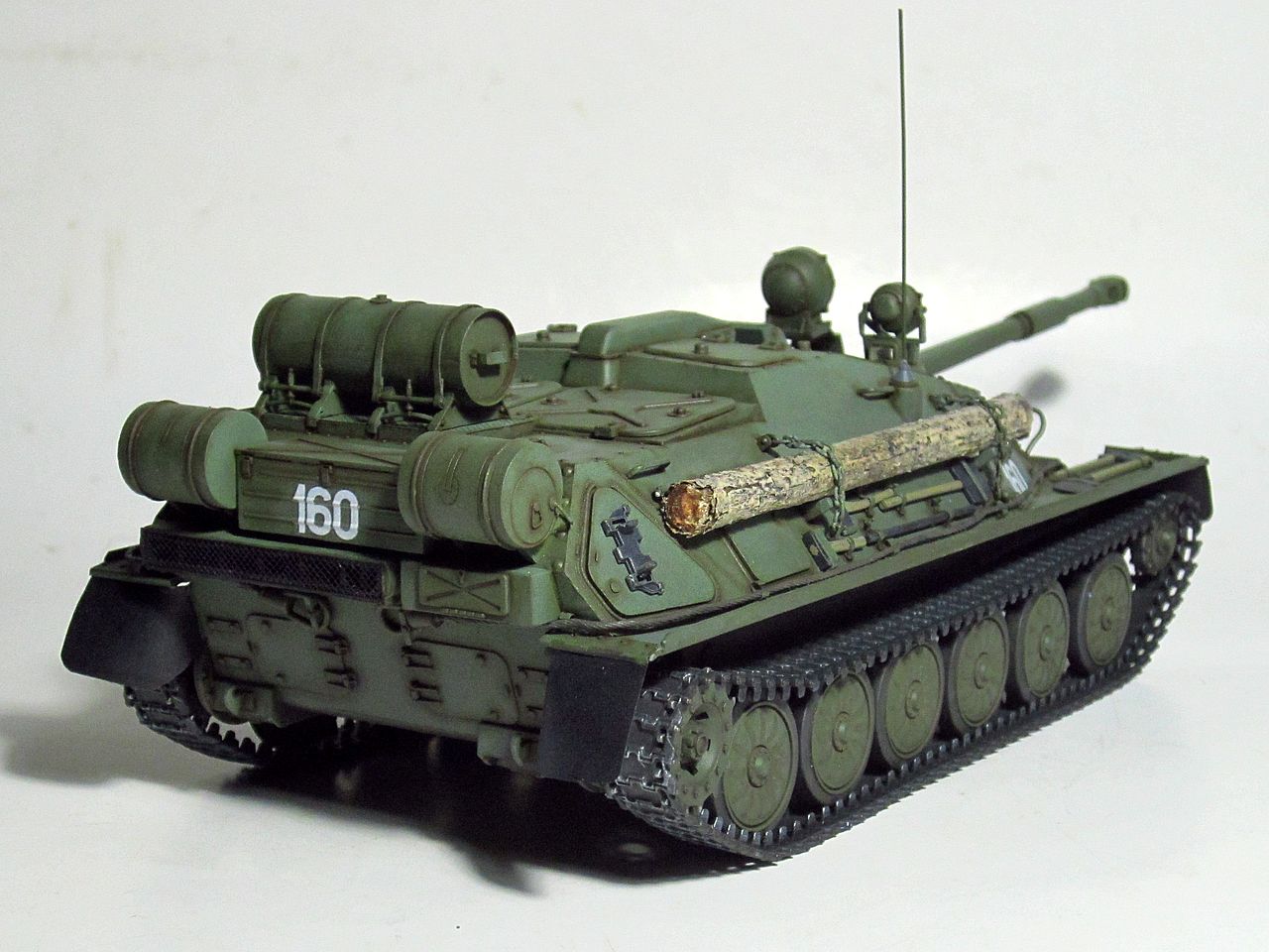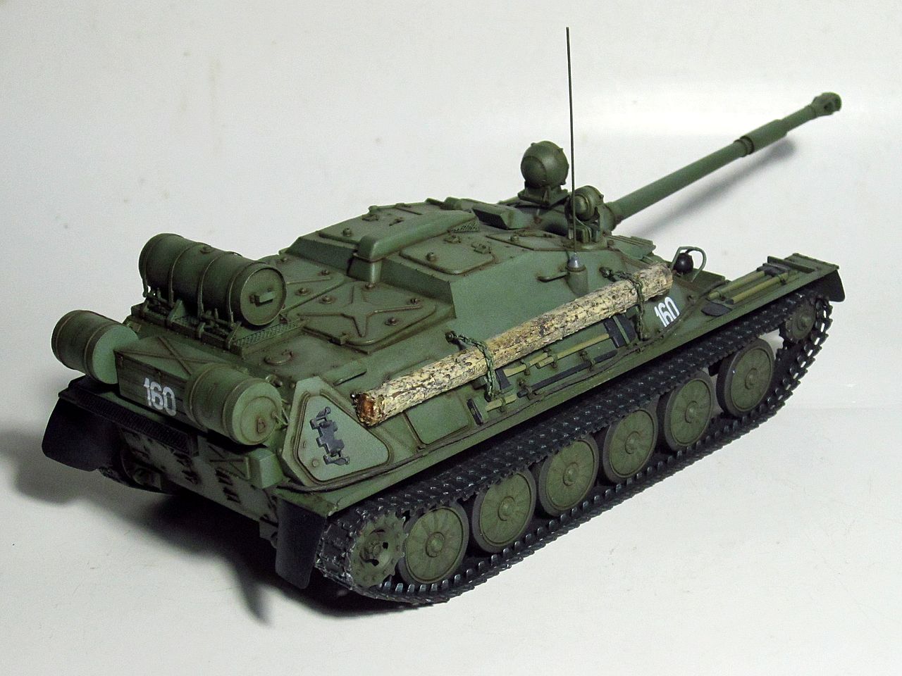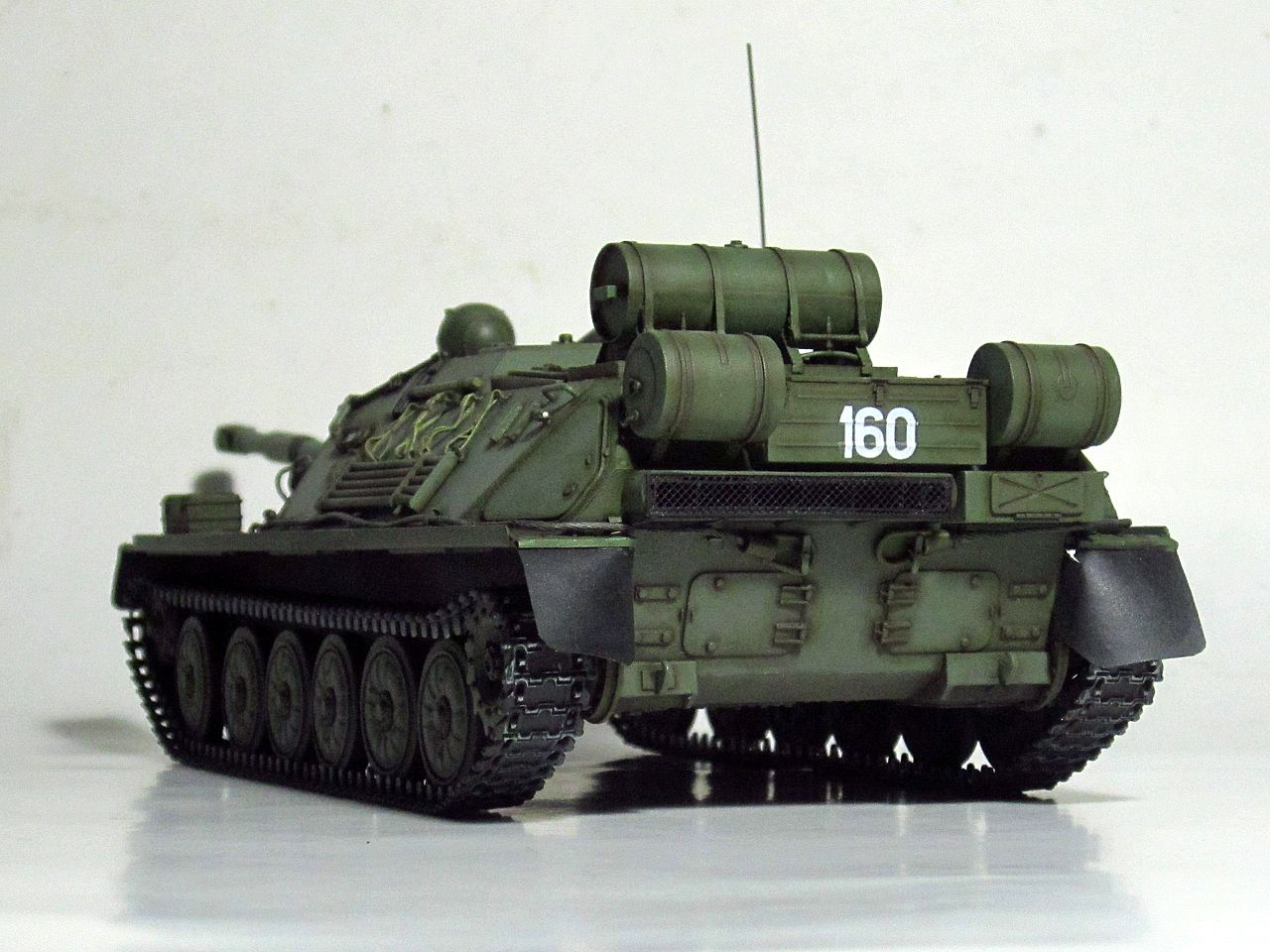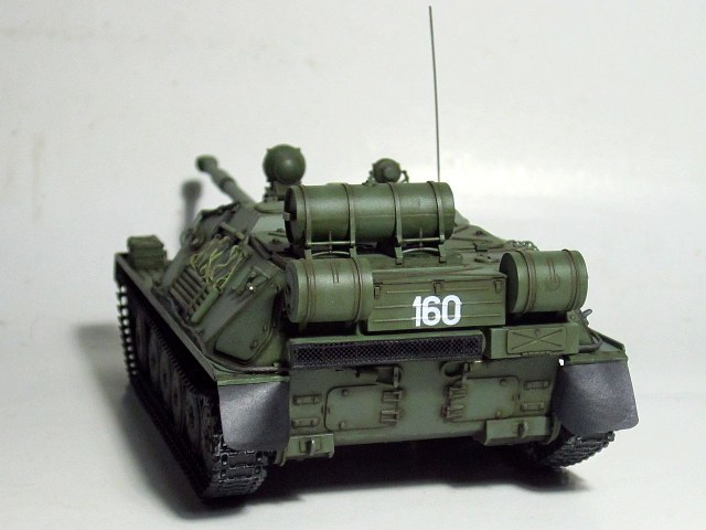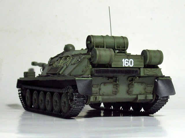 Для искоробки получилось отлично. Дорабатывать и переделывать в этом наборе нужно очень много всего. Если интересно- могу перечислить. Из придиризмов- не видел ни одной фотографии, где на СУ-85 вешали бы дополнительный 90-литровый топливный бак от Т-34/85 (впрочем бак бы тоже заменить, на смолу от SPM или травло от Voyager или Микродизайн). Конкретно Трамп подсмотрел такой бак у одной из польских музейных АСУ-85. При чем кроштейны креплений там были сломаны и производители травла это воспроизвели))