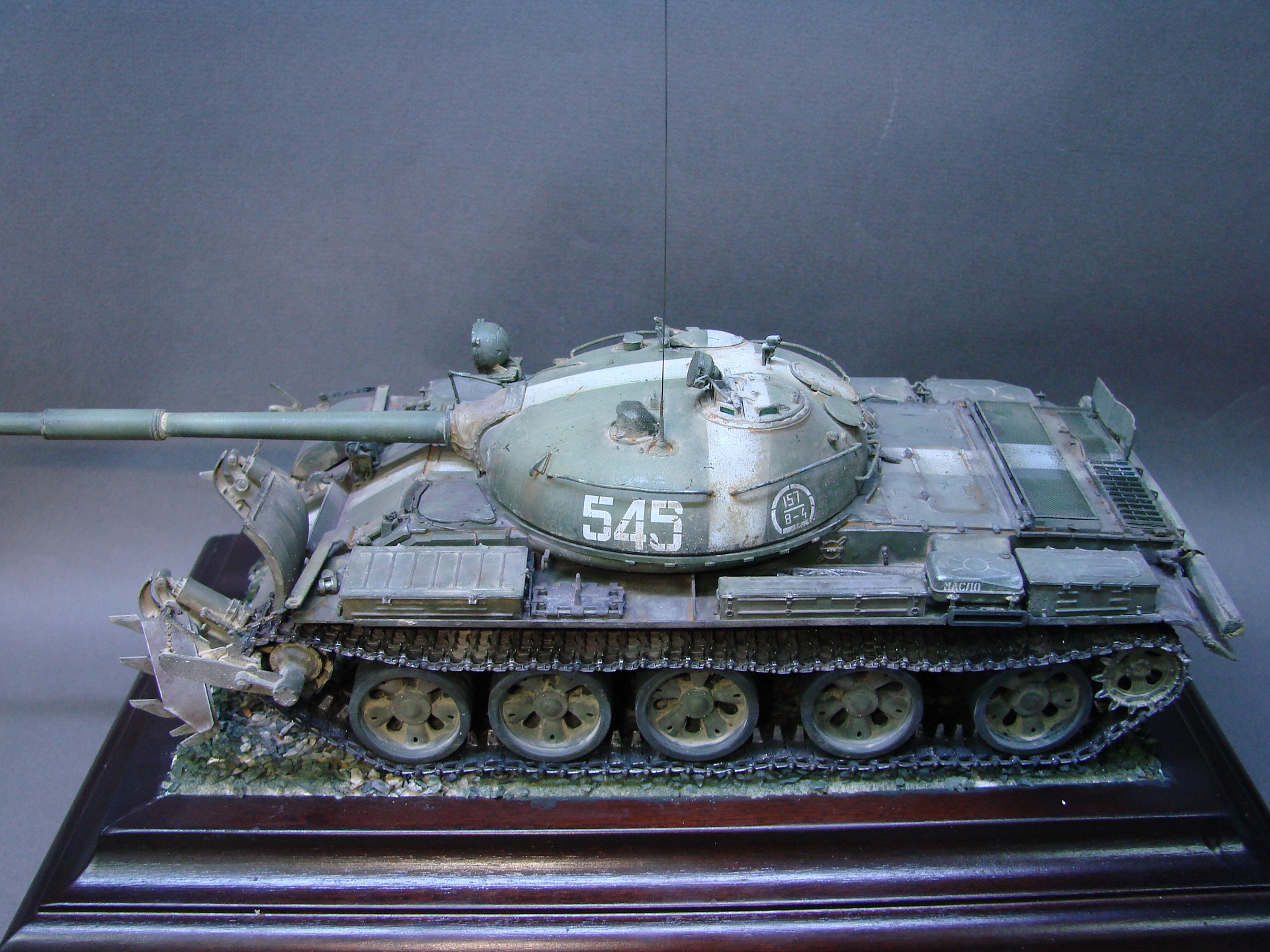 Доброго времени! Завершил Т-62 от звезды с допами от Армы, 62-ек в сети как грязи)) по сборке вопосов не было,звезда радует своим качеством,из допов докупил пара комплектов травления от микродизайна и арма дала так же не много хороших вещей,трал , ограждения фар ,ствол,антенный ввод и траки от мастерклаба. В общем сборкой и покраской остался доволен!