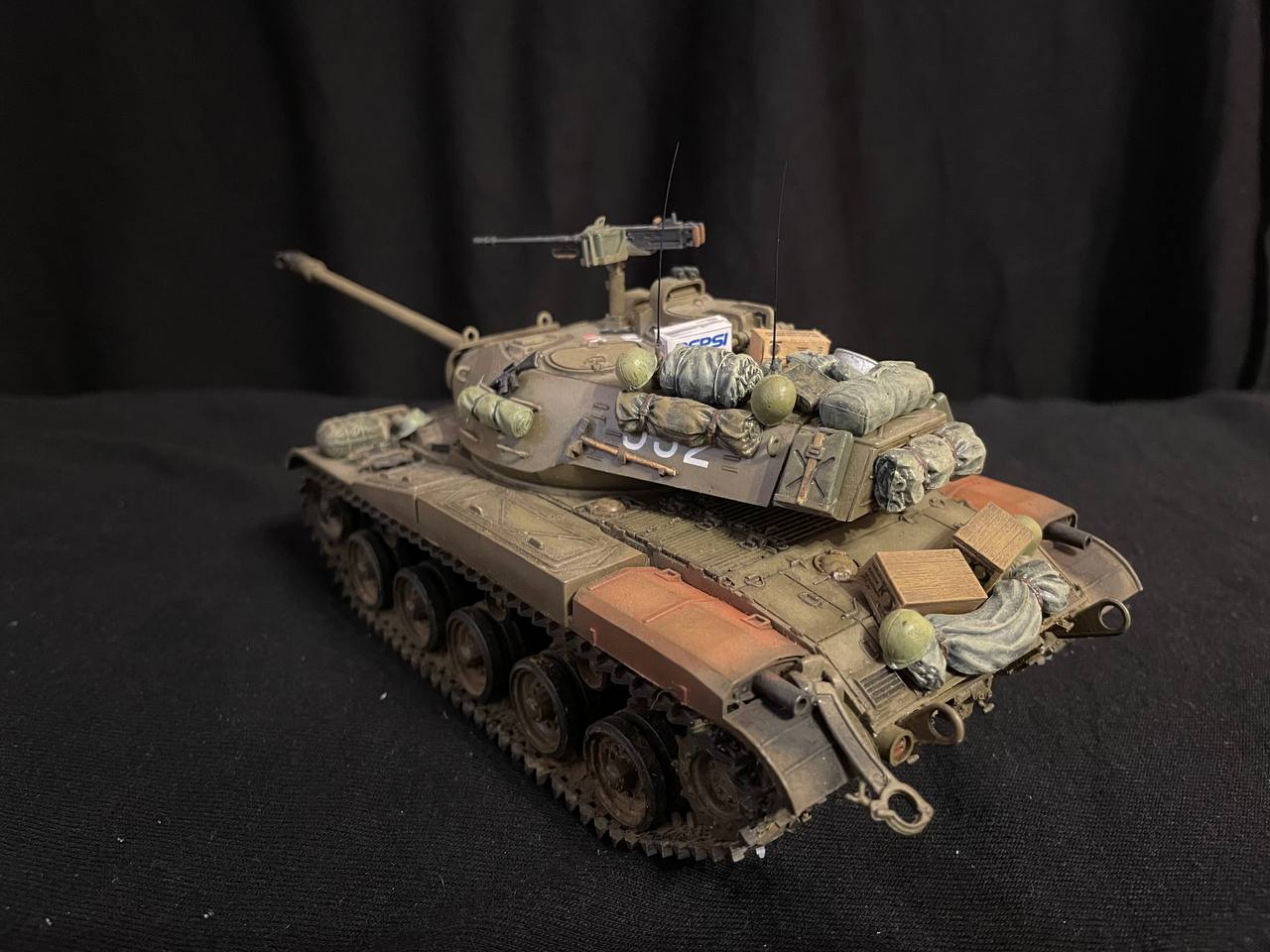 Изначально планировалось, делать модель полностью "из коробки", без любых доработок и допов. Однако со временем интерес к проекту упал, и на стадии грунта, модель на пол года зависла в статусе "недострой". Но в один день на просторах ВК попалось фото этого танка времен войны во Вьетнаме, и мне захотелось сделать что то подобное, статичное, в меру захламленное.