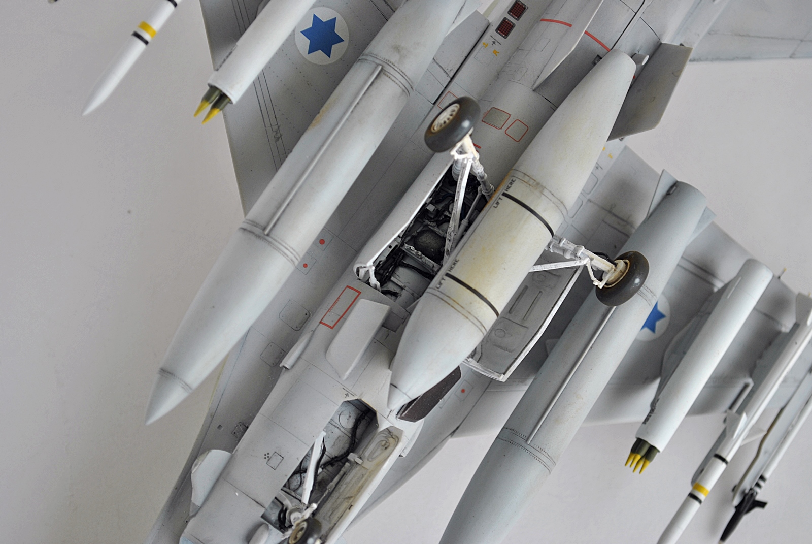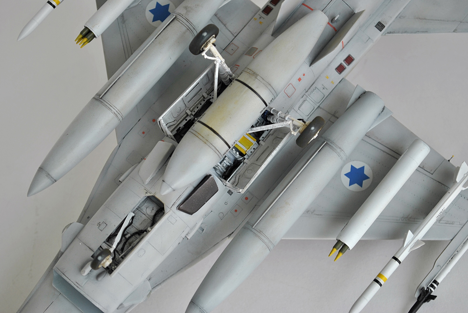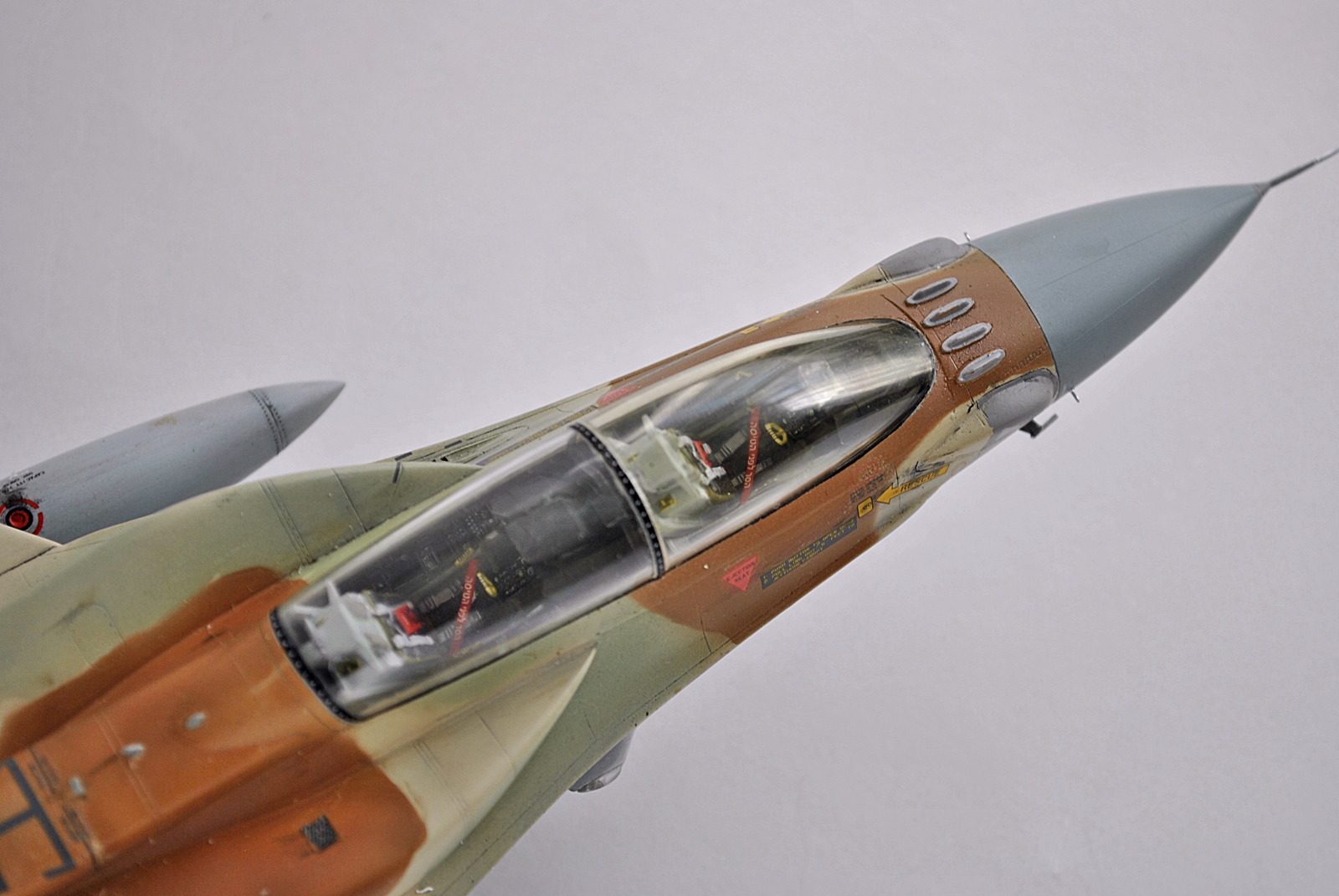 Набор достаточно старый и поэтому бедноват. Ниши шасси пришлось делать полностью из подручных материалов потому, что смоляные не соответствуют оригиналу,а так сделал более или менее похожими.Обтекатели антенн в носовой части тоже переделал.Кабина-декаль от Квинта.Фонарь тонировал лаком от Тамии,предварительно убрав шов.