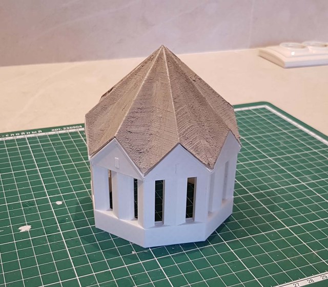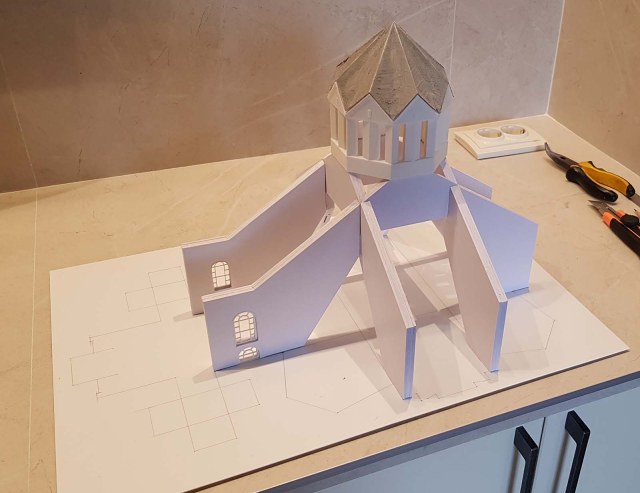 спасибо. Кстати, по поводу скепсиса на счет мощной лампы. Как я сказал - макет представляет собой интерьерный светильник. Внутри светодиодная лампа на 11 Вт, что позволяет добиться красивых отсветов на стены и потолок помещения. В главном барабане храма 16 окон, а на потолок проецируется 8 отблесков по кругу. Очень красиво и символично. Светодиодами такого не добиться