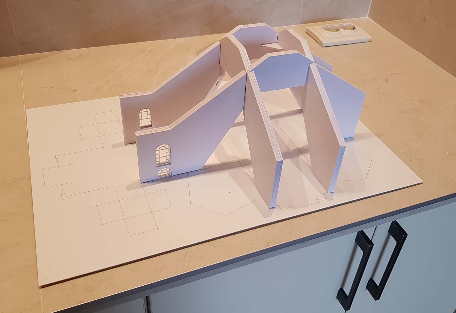 Материал - листовой ПВХ. Основание -- рама из Ясеня. Окраска - акрил Тамия.