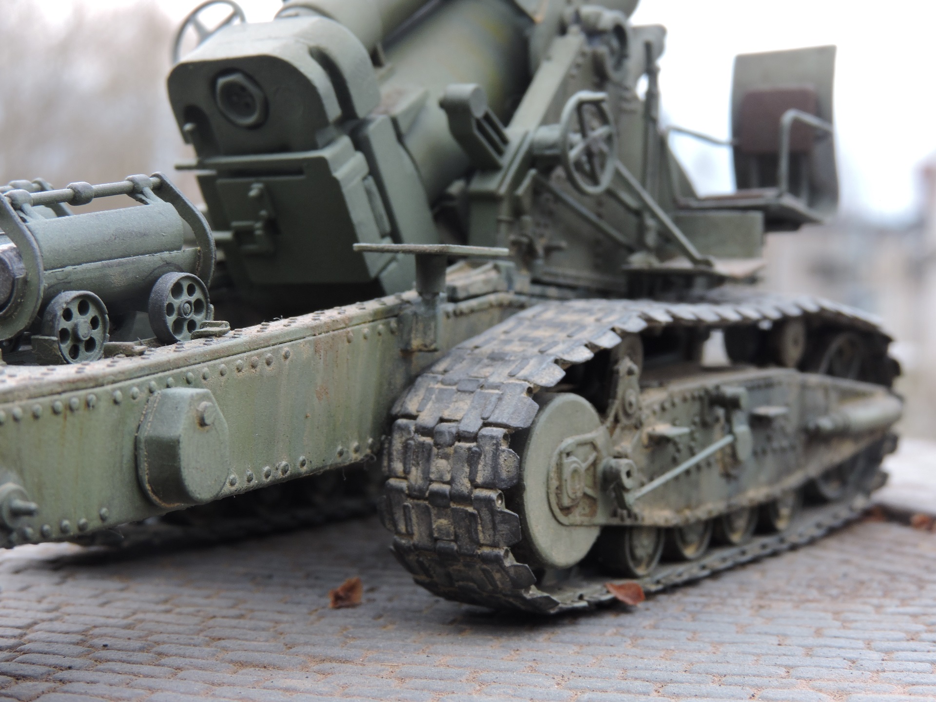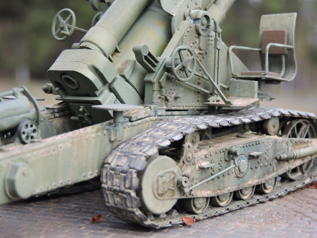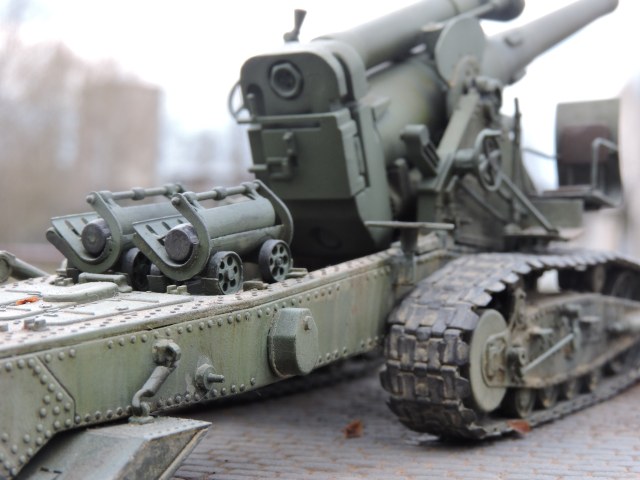 На этот раз для Вас моя старенькая, двух- или трёхлетняя миниатюра: Б-4, советская гаубица большой (особой) мощности калибра 203,2 мм. Модель, кажется, производства Трумпетер, хотя я не уверен - досталась мне уже почти собранной,