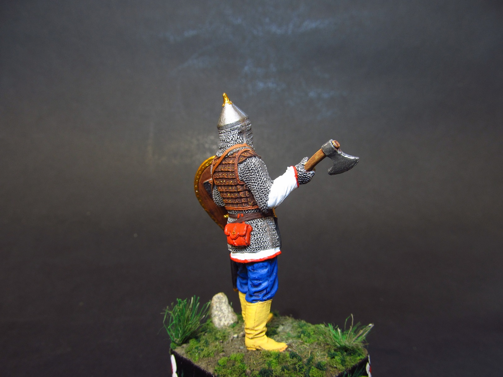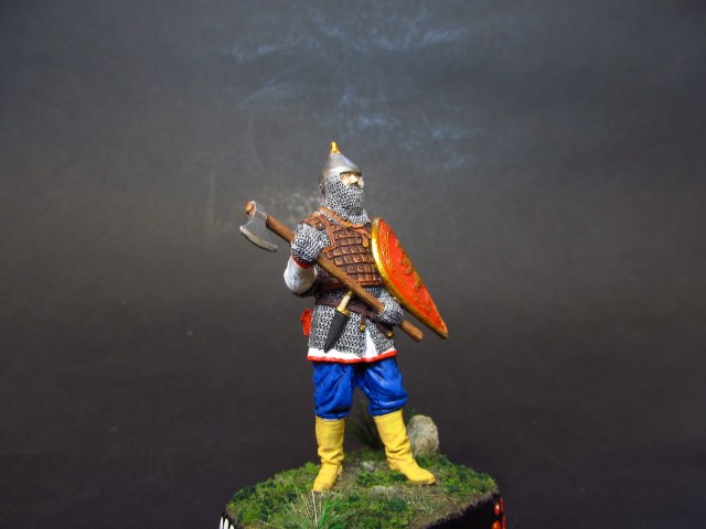 Приветствую вас, дорогие друзья! На сей раз, отойдя ненадолго от темы БТТ, хочу представить вашему вниманию свою очередную работу, а именно- оловянную фигурку русского воина с топором на период XIV века от фирмы EK- Castings (но по фирме- это не точно, может быть копия).