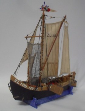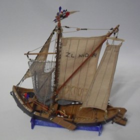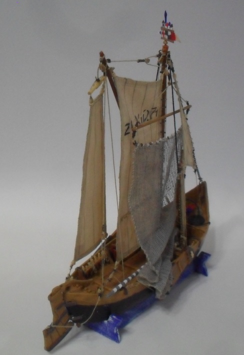 Уважаемые коллеги, предлагаю вашему вниманию модель рыболовного парусника известного в Прибалтикие под общим названием «Лодки Куршского залива», Куренас использовался не только в Литве, но и Латвии и в Российской части Куршского залива. Картонная модель изготовлена по чертежам журнала W.M.C. MODELS с изменением масштаба с 1:50 на 1:70. Модель выполнена из картона толщиной 0,5 и 1 мм. паруса ткань, рангоут деревянный. Размеры модели: Длина-165 мм, Ширина-55 мм, Высота-170мм.
